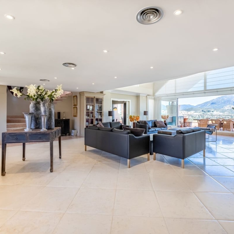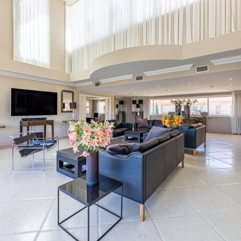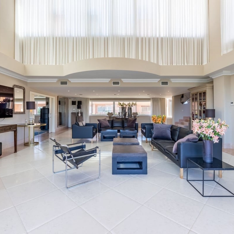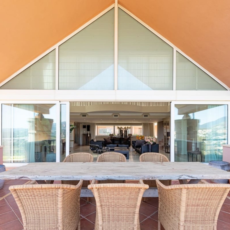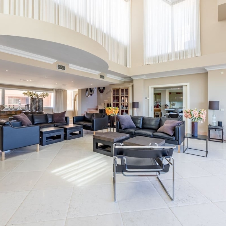 With Almost 1200m2, this amazing property has 5 bedrooms with 5 bathrooms en suite, one guest toillet, living room with double high ceilings, separate dinning room, kitchen with two double fridges, two ovens, two dishwashers, huge solarium with a private heated pool on the rooftop, and 360º views to the sea, mountain and golf.