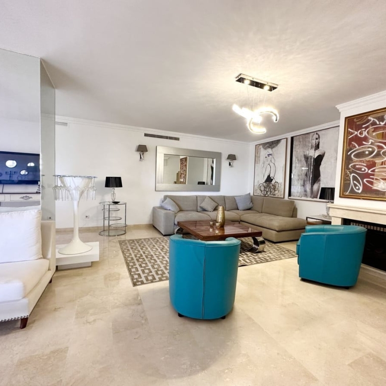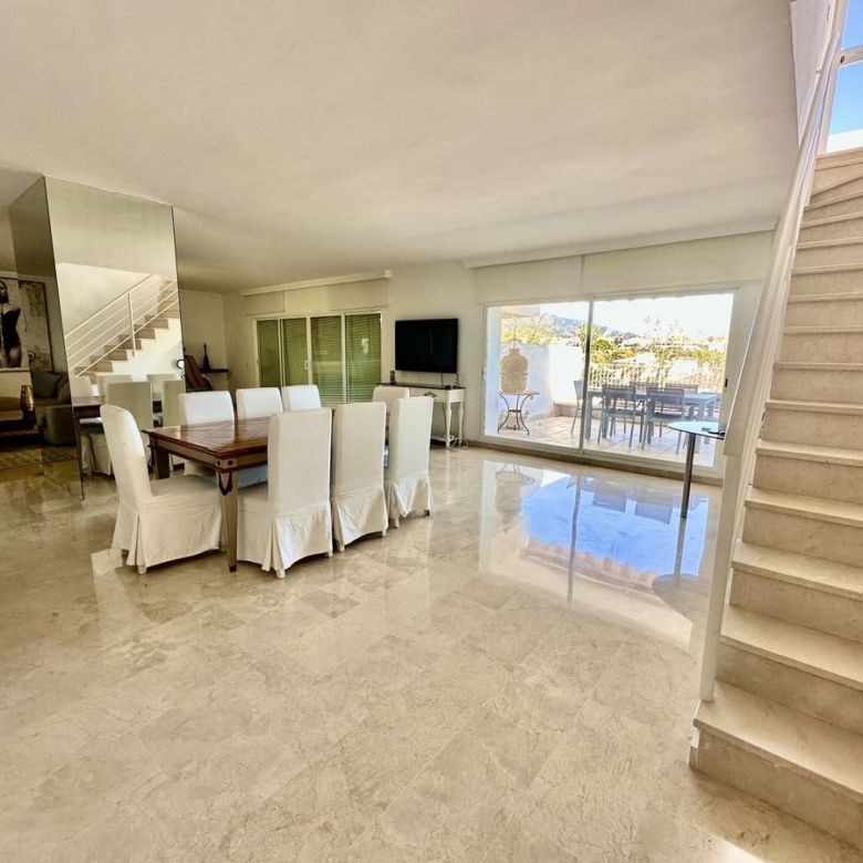 Opportunity, under price market. incredible 5-bedroom penthouse in Terrazas de Las Lomas, Marbella. Needs a little renovation but offers luxury and comfort. Wake up to sea views, enjoy spacious terraces, and live in an exclusive gated community with a private pool. Equipped kitchen, marble floors, modern amenities. Resort-style living with community gardens, pool, 24/7 security, gym, and playground. Don’t miss the chance to live in style at Terrazas de las Lomas del Marbella Club!