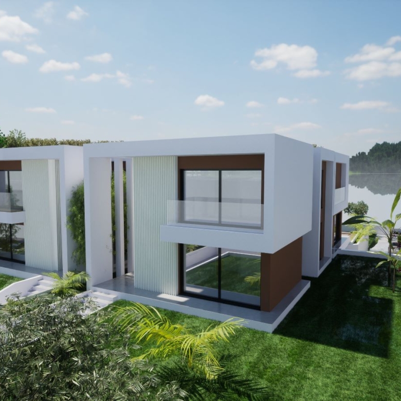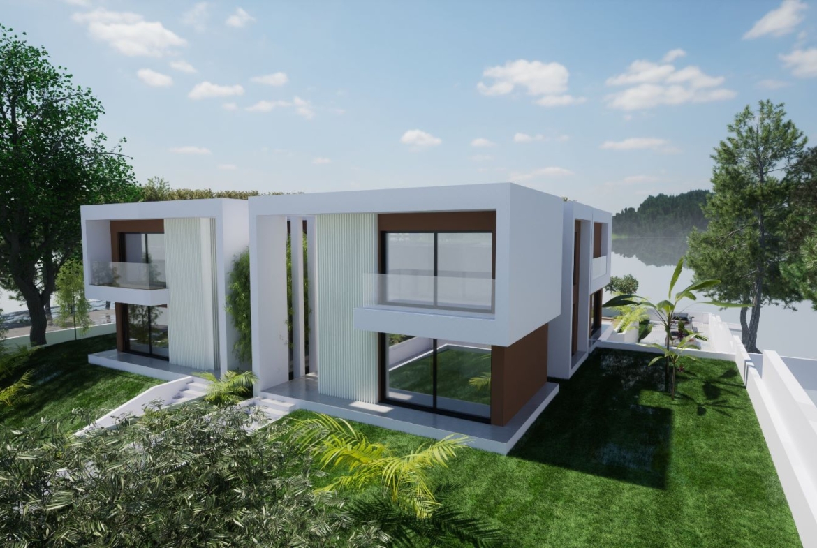 4/5-bedroom villa with approved project, to be sold turnkey. Planned 495 sqm (gross construction area), 273 sqm above ground and 122 sqm below the ground, garden and swimming pool, located in the exclusive Urbanização Soltroia. The project envisages a villa of contemporary architecture, two-storey and a basement for parking 7 cars, storage area and bathroom. The ground floor will have a living and dining room with opening to the kitchen, a bedroom and bathroom; the upper floor has 3 en suite bedrooms, one being a 50 sqm master suite with closet and river view, and could also have yet another suite by eliminating the closet. Includes all the modern finishes such as central vacuum, solar panels, electric shutters, Mitsubishi air conditioning in all rooms, bathrooms with windows, kitchen with island, fully equipped with direct open access to the living and dining room and view of the garden and swimming pool, home cinema, tilt-and-turn frames with thermal and acoustic break in all rooms including bathrooms, video surveillance on both floors, two independent alarms, one for the house and the other for the garage, with six video surveillance cameras distributed around the house, connected directly to your smartphone. The garden has salt water swimming pool with a waterfall with LED lighting and traditional Portuguese pavement. The plot in which it is set has three fronts facing East, West and South.Set in a 1553 sqm plot of land with a permit for the construction of 2 detached and identical villas of 273 sqm above ground each as well as 122 sqm basement for garage, storage area and bathroom. The entire plot has space for 545 sqm of total covered area above ground with an implantation area of 310 sqm and a 244 sqm basement to park about six cars. The sale can be turnkey with the opportunity to make some changes/adaptations to the project. Upon negotiation, it can be delivered completely furnished.The plot is about 100 metres from the River Sado beach and 950 metres from the Atlantic Ocean beaches, and 160 metres in a straight line from the Ferry terminal. The region has a variety of activities for the entire family. There is a connection via water taxi or ferryboat, from the port of Setúbal by two river terminals, Comércio Dock (ferries) and Pier 3 (catamarans) that ensure the shortest connection to Troia and Humberto Delgado Lisbon Airport. Less than 1 hour from Alcácer do Sal and a few kilometres from Comporta and Carvalhal.