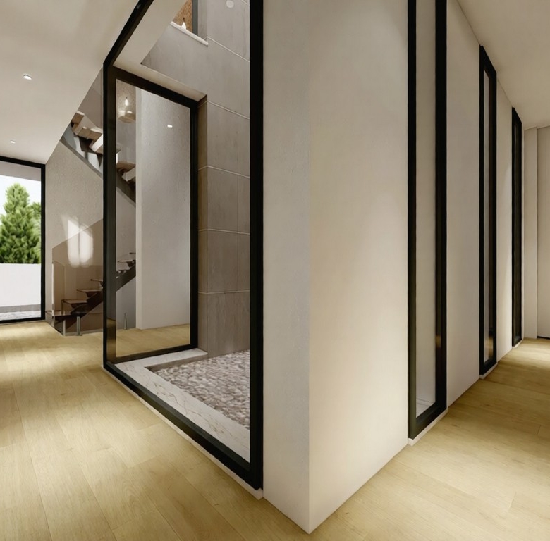 A wonderful, contemporary-style, 3 storey villa composed of a basement, a ground floor and a first floor, finished with high quality materials.On the ground floor there is an open plan kitchen/dining area and a living room with a fireplace. All have access to the outdoor terraces, swimming pool and garden. There are also three en suite bedrooms, a pantry and a service bathroom (WC).