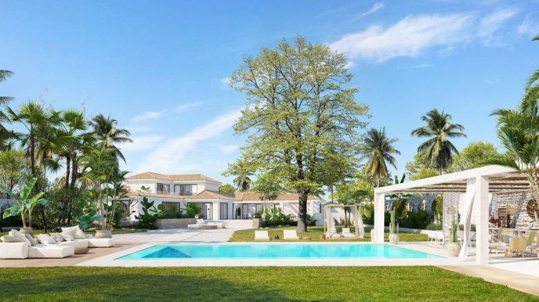 New turnkey project for sale in urb. Casasola, next to Guadalmina Baja on a large plot of 3,842m2. This home has a distinctive and elegant look and will be completely renovated inside and out to create a Brand new house in a traditional farm. The new house will be built to the highest standards. Spacious and bright with pure elegance in a perfect mixture of materials and natural elements. The house offers a large living room with fully equipped open kitchen, 5 to 6 bedrooms, direct access to the large garden and pool area. Located in a residential area with lush surroundings and within walking distance of the beach It is possible to build a second villa with a separate entrance. . Area Built 633 M Terrace 150 M Plot 3842 M * * OrientationSouth * Condition Excellent * Pool Private * Climate Control Air Conditioning * Views Garden Pool * Features Covered Terrace Near Transport Private Terrace Storage Room Utility Room Barbeque * * FurnitureOptional * * KitchenFully Fitted * * Garden Private * Security Alarm System