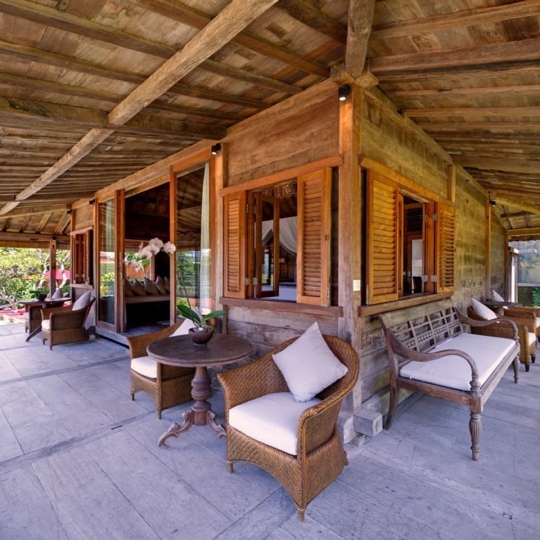 Built-in 2009, the 2-storey villa features 6 individual living pavilions, traditional Balinese and Indonesian décor, alang-alang thatched roofs, high ceilings, and an open living room.