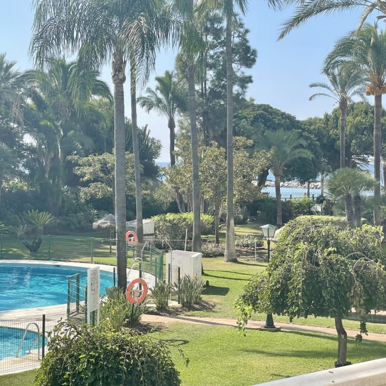Experience luxurious beachfront living in this stunning ground-floor duplex apartment in Puerto Banus. Located in a prestigious residence with beautiful tropical gardens, fountains, and waterfalls, this home is in the heart of Puerto Banus.