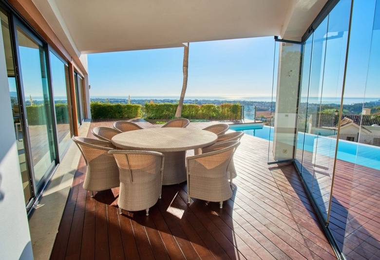 Beautiful newly renovated villa in the gated community of Mirador del Paraiso, Benahavis, with one of the best views of the entire Costa del Sol. This property is located in a community of 5 villas in the super urbanization of Mirador del Paraiso, with 24 hour surveillance by professional guards. It has almost 400 m2 built, distributed over 3 floors plus solarium. On the main floor, a large living room with integrated kitchen with stunning sea views. The kitchen is fully equipped with Siemens appliances and has a separate laundry room – pantry. Exit to the terrace with wooden floor and infinity pool design. On this floor, a bedroom with separate full bathroom and a guest toilet. On the upper floor, 4 bedrooms. The master bedroom, with spectacular sea views, dressing room and bathroom with shower and whirlpool tub. 3 more bedrooms, all with beautiful views and exits to terraces, sharing a bathroom. Ascent to the solarium by external staircase, where we enjoy 360º views of the mountains, the golf of El Paraiso, Gibraltar and the coast of Africa. In the basement, multipurpose room (for games, cinema room, gym, etc), with a guest toilet, and a bedroom with bathroom en suite. The property is newly renovated and updated. It offers air conditioning and underfloor heating throughout the house and manageable by zones, porcelain tile floors, wood around the pool and barbecue area, two outdoor parking spaces. The villa is located in Mirador del Paraiso, a community composed of villas, townhouses and apartments of first level, with 24 hour surveillance by professional guards and cameras and surrounded by nature and tranquility. A few minutes from Golf El Paraiso and Atalaya Golf and all services. Area Built 487 M Terrace 277 M Plot 837 M * * OrientationSouth * Condition Excellent * Pool Private * Climate Control Air Conditioning * Views Sea Mountain Panoramic * Features Covered Terrace Fitted Wardrobes Near Transport Private Terrace Solarium WiFi * * KitchenFully Fitted * * GardenPrivate * * Security Gated Complex Entry Phone * Parking Garage More Than One