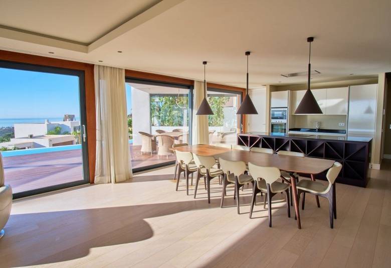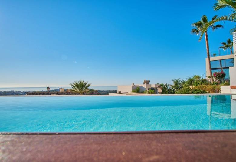 Beautiful newly renovated villa in the gated community of Mirador del Paraiso, Benahavis, with one of the best views of the entire Costa del Sol. This property is located in a community of 5 villas in the super urbanization of Mirador del Paraiso, with 24 hour surveillance by professional guards. It has almost 400 m2 built, distributed over 3 floors plus solarium. On the main floor, a large living room with integrated kitchen with stunning sea views. The kitchen is fully equipped with Siemens appliances and has a separate laundry room – pantry. Exit to the terrace with wooden floor and infinity pool design. On this floor, a bedroom with separate full bathroom and a guest toilet. On the upper floor, 4 bedrooms. The master bedroom, with spectacular sea views, dressing room and bathroom with shower and whirlpool tub. 3 more bedrooms, all with beautiful views and exits to terraces, sharing a bathroom. Ascent to the solarium by external staircase, where we enjoy 360º views of the mountains, the golf of El Paraiso, Gibraltar and the coast of Africa. In the basement, multipurpose room (for games, cinema room, gym, etc), with a guest toilet, and a bedroom with bathroom en suite. The property is newly renovated and updated. It offers air conditioning and underfloor heating throughout the house and manageable by zones, porcelain tile floors, wood around the pool and barbecue area, two outdoor parking spaces. The villa is located in Mirador del Paraiso, a community composed of villas, townhouses and apartments of first level, with 24 hour surveillance by professional guards and cameras and surrounded by nature and tranquility. A few minutes from Golf El Paraiso and Atalaya Golf and all services. Area Built 487 M Terrace 277 M Plot 837 M * * OrientationSouth * Condition Excellent * Pool Private * Climate Control Air Conditioning * Views Sea Mountain Panoramic * Features Covered Terrace Fitted Wardrobes Near Transport Private Terrace Solarium WiFi * * KitchenFully Fitted * * GardenPrivate * * Security Gated Complex Entry Phone * Parking Garage More Than One