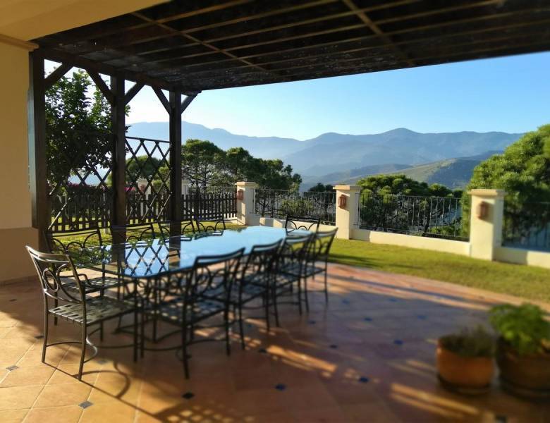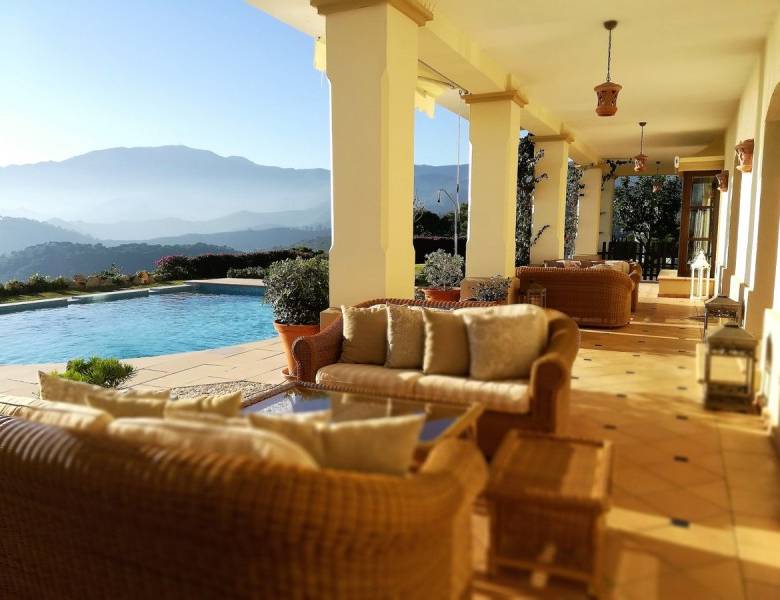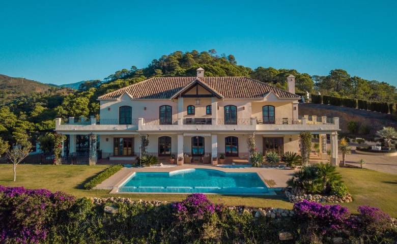 This magnificent estate set against the backdrop of the mountains, exudes peace and tranquillity yet is only an easy 8 minute drive from the beach and amenities. Boasting outstanding panoramic sea views, it is built around a central traditional Andalucian Cortijo style courtyard and has been finished to an extremely high standard by the current owners. The property, which was constructed in 2011 by the current owners is distributed over 2 floors and a basement with travertine marble floors throughout offering 6 bedrooms, 2 of which are situated in the separate self-contained guest apartment, which also has an office/6th bedroom. The spacious lounge and dining room of the villa open out onto a terrace which overlooks the superb ozone heated infinity swimming pool from where you can enjoy the stunning panoramic views. A separate TV room is situated alongside the lounge, leading through to the beautiful and spacious high-quality kitchen/breakfast room which has access to a gorgeous west facing terrace from where to enjoy the evening sunsets and mountain views. The basement is huge, providing a wine cellar, games room and a very large garage for 5/6 cars. The extensive grounds boast a putting green, vegetable garden, private water well and an orchard with 50 different types of fruit trees! Additional features include ducted hot/cold air conditioning, electric underfloor heating throughout, automatic irrigation, an alarm system. This is truly a stunning and unique property for those looking for the ultimate privacy and tranquillity and must be seen to be fully appreciated. Area Built 1070 M Terrace 163 M Plot 99660 M * * OrientationSouth * Condition Excellent * Pool Private * Climate Control Air Conditioning * Views Sea Mountain Panoramic * Features Gym Guest Apartment Access for people with reduced mobility Staff Accommodation * * FurnitureNot Furnished * * KitchenFully Fitted * * Garden Private Landscaped * Security Alarm System