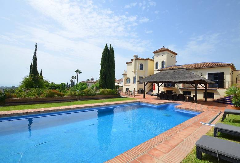 EXCEPTIONAL LUXURY VILLA in a very quiet area located between Marbella and Gibraltar, 5 min driving from the famous Laguna Beach beach club and the equestrian school. This CLASSIC MEDITERRANEAN STYLE property, in EXCELLENT CONDITION, is southeast facing providing abundant natural light. At the main entrance and creating a pleasant first impression you will find a beautiful and flowered Andalusian patio with its fountain and palm trees that give it the first touch of distinction. Enjoy an elegant and spacious garden surrounded by abundant vegetation and beautiful trees that offer you complete privacy. The pool in one corner of the plot is heated. Distributed over 3 floors and a large living room with underfloor heating throughout the house, The bedrooms are all spacious or even more, the main one with a large living room and access to the terrace from where you can see the sea, A large kitchen, high quality with access to the dining room and terrace. In the basement of the house there is a guest apartment, it has its own entrance and can be used for other uses such as an office, gym, etc. A garage for 4 cars, The house is magnificently built and has high quality equipment, such as a modern alarm system, air conditioning and central heating, double glazing and magnificent carpentry that is integrated into the robust walls, plus a length, etc. . In addition to a magnificent family home, it is also a very comfortable home, being able to perfectly live on one floor. YOUR VISIT IS HIGHLY RECOMMENDED. Area Built 675 M Terrace 135 M Plot 1550 M * * OrientationSouth East * Condition Excellent * Pool Private * Climate Control Air Conditioning * Views Sea Mountain Country * Features Covered Terrace Fitted Wardrobes Private Terrace Satellite TV WiFi Games Room * * FurnitureOptional * * KitchenFully Fitted * * Garden Private * Security Gated Complex Entry Phone