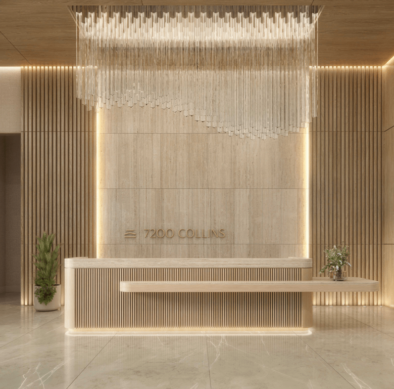 Three levels of bespoke amenities include the exclusive 7200 Collins Beach Club, resort-style pool, landscaped gardens, a state-of-the-art fitness centre, a yoga and meditation terrace, a private owners’ lounge, and much more. Just steps from the beach, 7200 Collins offers an unparalleled coastal lifestyle with luxury and convenience throughout.