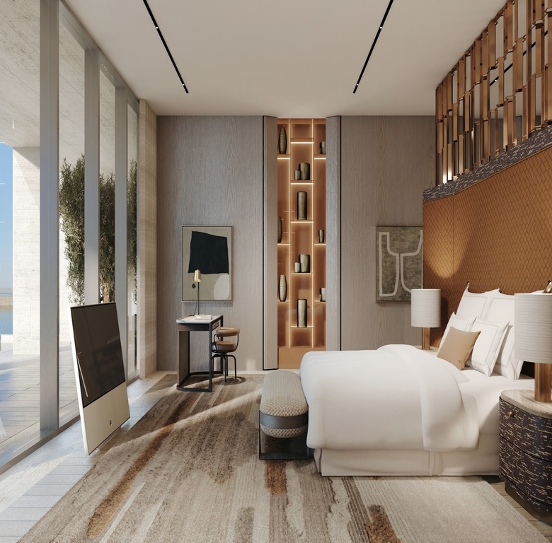 The units at Keturah Resort embody sophisticated luxury and wellness-focused design, crafted meticulously by renowned architects and designers. Creekside Mansions offer expansive living areas with 8 bedrooms, dual kitchens, a grand staircase, a media room, a majlis, spa facilities, and private wellness areas. Each mansion features a spectacular rooftop terrace for entertaining and private pools, overlooking tranquil creekside views. The Creekside Residences feature penthouses and residences with panoramic windows, expansive terraces, state-of-the-art kitchens, home cinemas, walk-in closets, and premium wellness integrations.