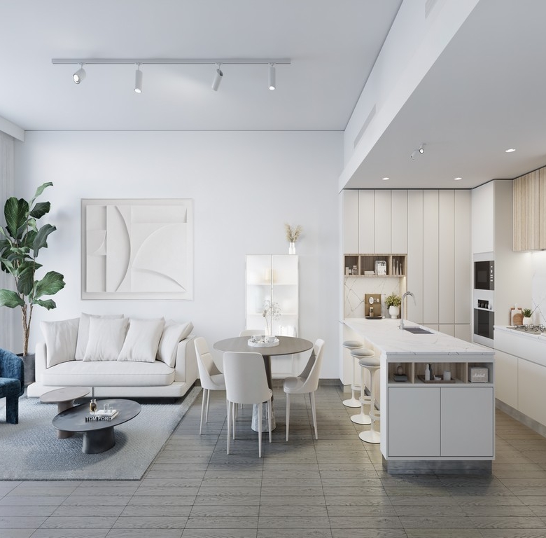 Living & Dining Areas: Open-concept layouts with modern finishes and warm color palettes
