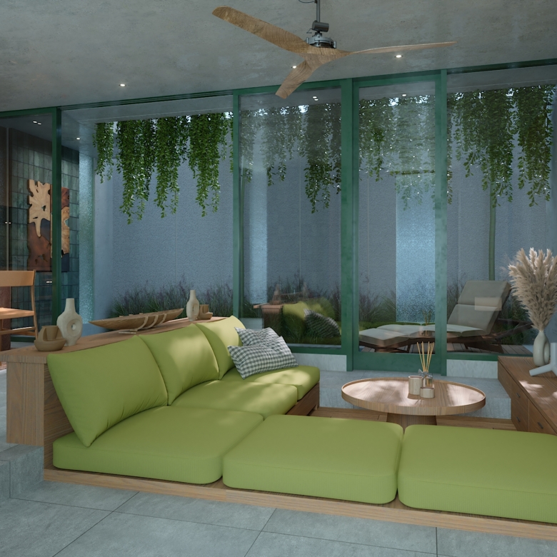 Crafted with exquisite attention to detail, the villa combines warm textures, natural materials, and a sleek contemporary aesthetic. Expansive glass doors open to the pool and terrace, allowing natural light and gentle breezes to fill the space—perfect for relaxed tropical living.