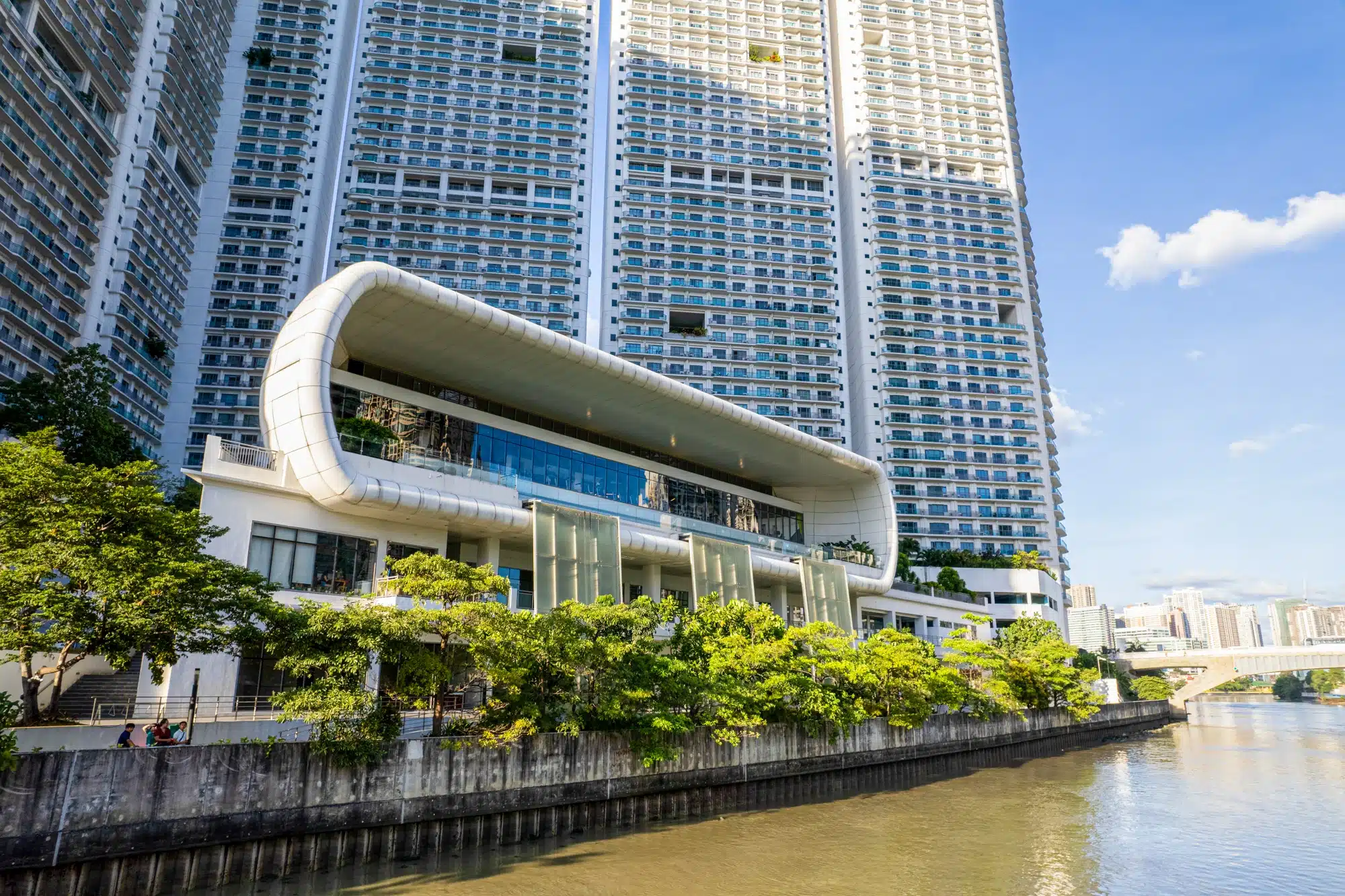 The Pebble: A central clubhouse with gym, lap pool, and lounge