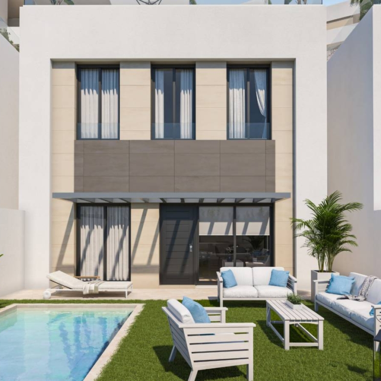 Villas for sale in Aguilas, Murcia, Costa Calida This exclusive residential has 10 elegant villas with 4 bedrooms and 3 bathrooms, each one with its own private swimming pool and almost all with direct access to its garage, as well as 36 flats with 2 and 3 bedrooms distributed in 4 modern blocks. The residential has 2 communal swimming pools and each property has a parking space and storage room in the basement. The properties have been designed with excellence in mind, offering spacious terraces on the ground and first floors and solariums on the upper floors, where the view of the horizon becomes a canvas of experiences. The homes have fully equipped kitchens and bathrooms and pre-installation for ducted air conditioning. This development is located in Aguilas, Murcia, which offers privileged views and a perfect connection with nature, as well as easy access to key services. 800 metres from the sea, next to a shopping centre. Property ID: GH-24283 Price: €378,000 Property Size: 117 m2 Land Area: 150 m2 Bedrooms: 4 Bathrooms: 3 Property Type: Villa Property Status: For Sale