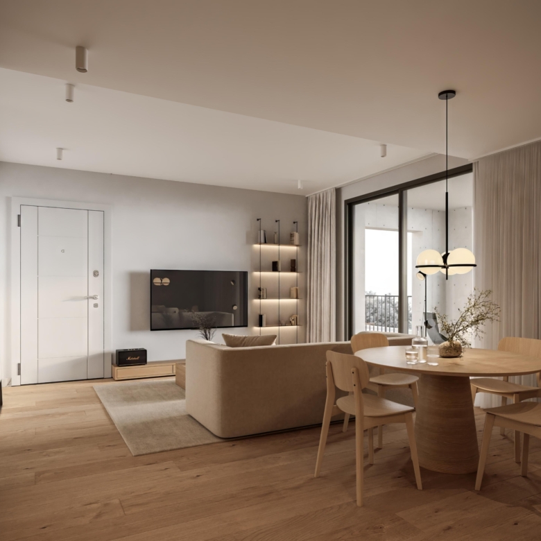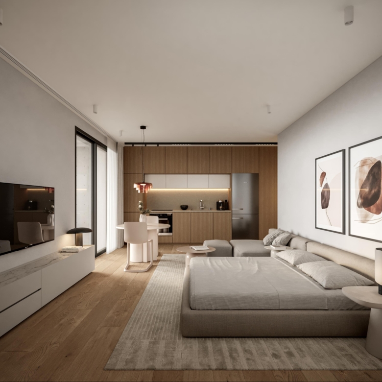 Akakia Residences is a development of apartments that combines modern design with a prime location, located in the heart of Paphos city and close to the sea. The modern philosophy of the building is reflected in the fair-faced concrete exterior walls and the use of top-quality marble and parquet, all these in an earth palette, to combine urban living with natural aesthetics.