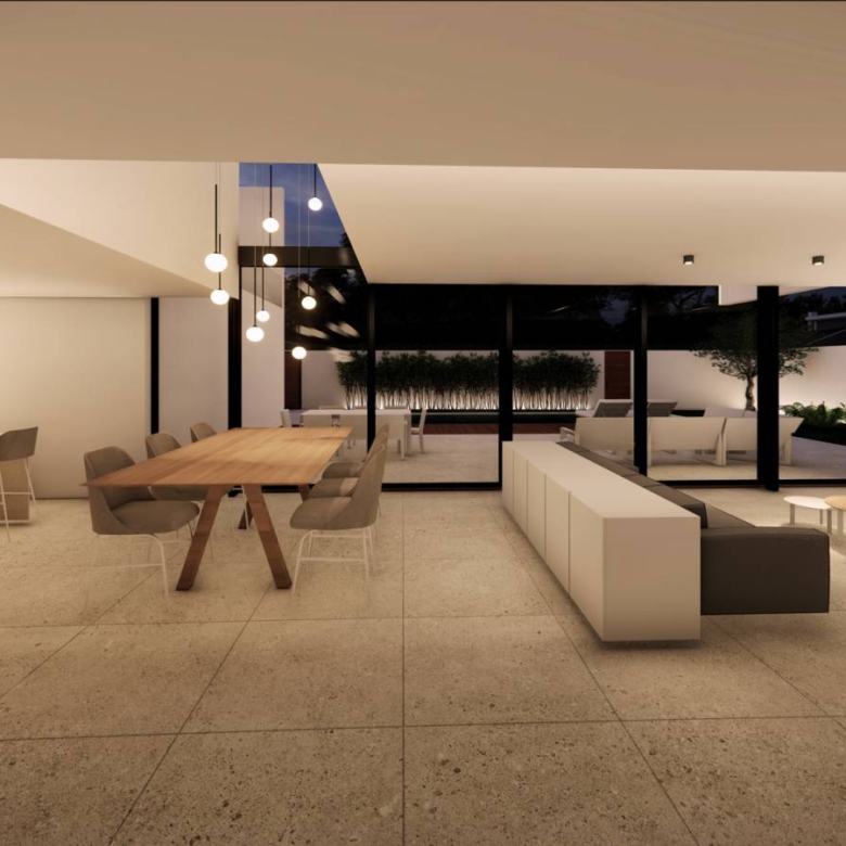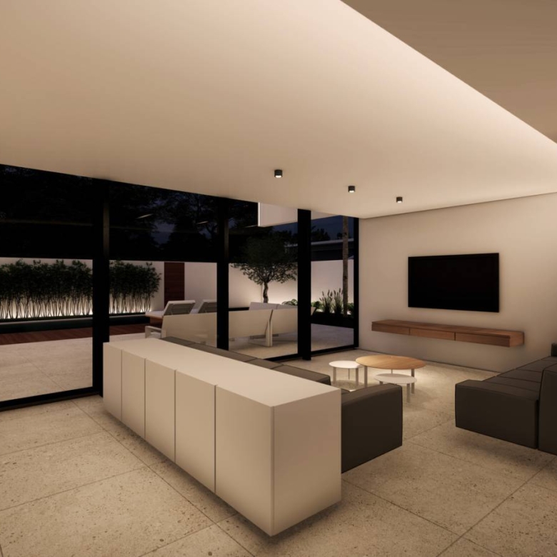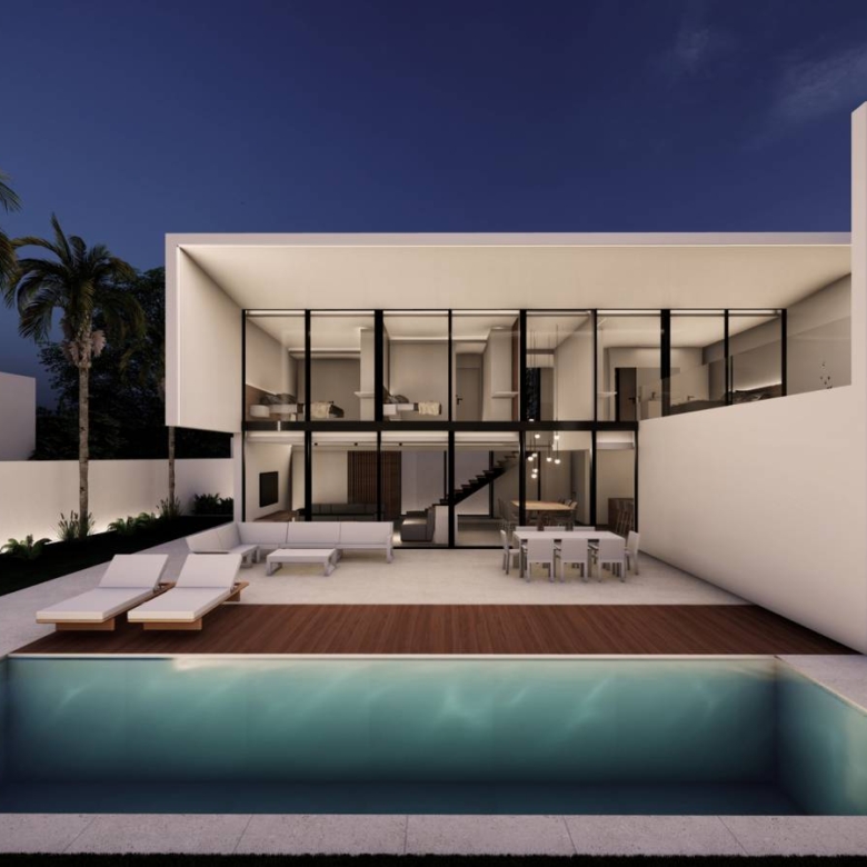 Villa for sale in Alfaz del Pi, Costa Blanca Located in the urban center of Albir, just 15 minutes’ walk from the beach, these new-build homes with great personality seek to dialogue with light in each and every one of their points through their design and correct orientation. Inside, the house is configured in a single continuous space of 83m2 without interruptions, this allows the living room, dining room and kitchen to be connected and correctly lit by the window that connects with the main terrace facing South-East, in which is the pool. The different spaces also communicate vertically through the double height above the dining room, which generates a magnificent spatial sensation and helps the light to cross the house from one end to the other, until it meets the backyard, which allows a total ground floor cross ventilation. We also find on the ground floor a covered garage, toilet and laundry room, all of them with a direct connection to the outside. The first floor is accessed via the continuous staircase with a central stringer and cantilevered wooden steps, where we find a distributor that opens at double height over the dining room and leads to three bedrooms, all of which have spaciousness (2 rooms of 24m2 and 1 room of 15m2), integrated bathroom, natural and cross ventilation, custom wooden cabinets with lacquered doors to give continuity to the walls and direct connection to the main terrace facing south-east. From the exterior service staircase you access the roof, where there is a 90m2 solarium from which to enjoy the magnificent views of the Serra Gelada and Puig Campana and take advantage of the unbeatable climate that characterizes the area. The house also has a 90m2 semi-basement with natural lighting and ventilation, in which a utility room is located and offers infinite possibilities to future owners. The exterior of the house is intended to be the vegetal setting where it can be implanted, offering the house an interior oasis and generating its own ecosystem. The different tapestries formed by ceramic flooring, grass and wooden slats differentiate the different uses on the same level in a subtle way. The pool fits into the width of the house and has the properties to be a pool for sports and recreational use. In the outdoor area there is a part of the terrace 1m sunken with respect to the house that allows lighting the semi-basement and generating a space with a greater component of privacy. Property ID: GH-307368-D Price: €1,150,000 Property Size: 339 m2 Land Area: 478 m2 Bedrooms: 3 Bathrooms: 3 Property Type: Villa Property Status: For Sale