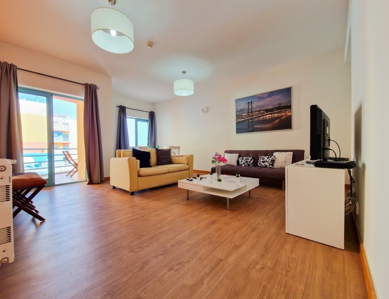 This very practical 2 bedroom apartment is located right by the Albufeira Marina. Positioned in a corner with east and north exposition, this first floor apartment offers views of the communal swimming pool, moored boats and distance sea views. Constructed in 2003 with bright and colourful style, compesed with hall, fully fitted and equipped kitchen, living/dining area with a east side facing terrace with lovely views, a bedroom ensuite bathroom with a small terrace facing west, another bedroom with corner terrace facing north and east, next to the second bathroom; both bedrooms have fitted wardrobes. This apartment has a reserved parking place in the underground garage and there is a communal swimming pool with large terrace excellent for sunbathing and is sold fully furniture (apart from personal items). This is a great apartment for either nautical lovers, holiday makers or as permanent living. Features Energy & utilities Energy consumption rating: C Emissions rating: C Property ID: golden2195 Price: €395,000 Property Size: 74 m2 Bedrooms: 2 Bathrooms: 2 Property Type: Apartment Property Status: For Sale