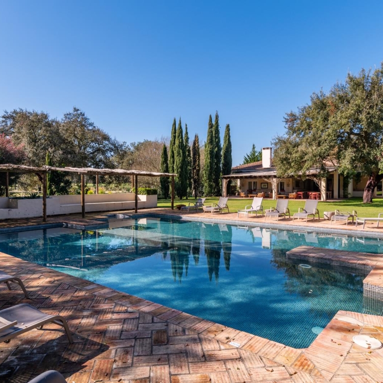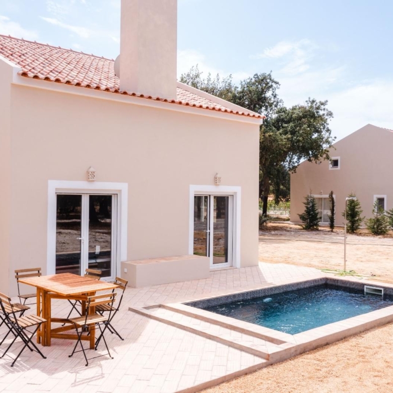 Very close to the Moorish town of Alcacer do Sal, which extends from the Castle to the Sado River, in a captivating set of narrow streets and white houses with red roofs, it imposes itself as a charming area about 1 hour from Lisbon. In a short distance this hotel project was developed, in the middle of a bucolic environment, among centuries-old cork oaks, birds and animals that peacefully live in this area. The complex is composed by a central nucleus with 6 bedrooms, reception, communal living and dining rooms, kitchens and a harmonious set of four traditional style houses, with generous areas and a cosmopolitan style decoration. The villa, with a 2 bedroom typology, comprises on the ground floor a large dimensioned living room with an ample high ceiling with a heat recovery unit, a fully equipped open kitchen, a suite and on the upper floor there is another suite and a terrace. It has an outdoor leisure area with a private swimming pool. On that 9-hectare estate there are several entertainment areas, including a cricket field with all the regulatory measures; a generous communal swimming pool in the middle of a lawn sprinkled with cork oaks; a place where horses for walks stay; all in an environment that allows you to ride an electrical bicycle, or even walk and take a walk through the Alentejo plain. Perfect to enjoy the best of each season, in the winter you can pick mushrooms, ride horses, enjoy the comfort of the countryside by the fireplace, in the spring you can do Bird Watching strolling throughout the property, in the summer, in addition to the beaches of Comporta that are only two steps away, you can use the private or communal swimming pool, walk, ride a horse or bike, have fun in a group in a lively game of Cricket and in the evening enjoy the charm of the outside and dine quietly. Excellent investment in a unit within this quality hotel project, with all the charms in the middle of a plain and a short time from the beaches of the Alentejo coast. Porta da Frente Christie’s is a real estate agency that has been operating in the market for more than two decades. Its focus lays on the highest quality houses and developments, not only in the selling market, but also in the renting market. The company was elected by the prestigious brand Christie’s International Real Estate to represent Portugal, in the areas of Lisbon, Cascais, Oeiras, Sintra and Alentejo. The main purpose of Porta da Frente Christie’s is to offer a top-notch service to our customers. Don’t miss this opportunity to acquire this stunning villa in Comporta and enjoy a unique lifestyle. Contact us for more information and to schedule a visit. Property ID: PDF-PF32371 Price: €420,000 Property Size: 103.81 m2 Bedrooms: 2 Bathrooms: 2 Year Built: 2023 Property Type: House Property Status: For Sale