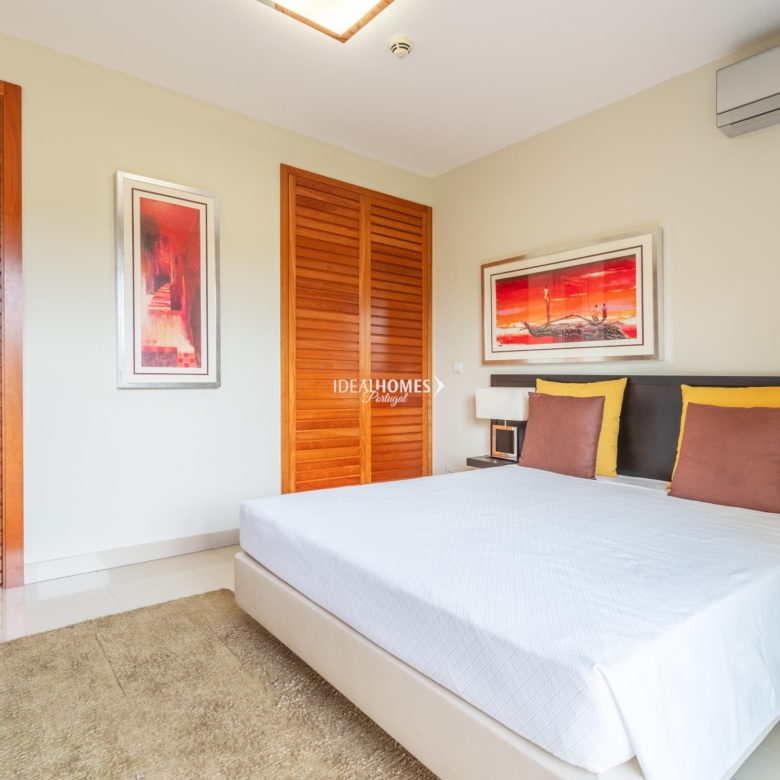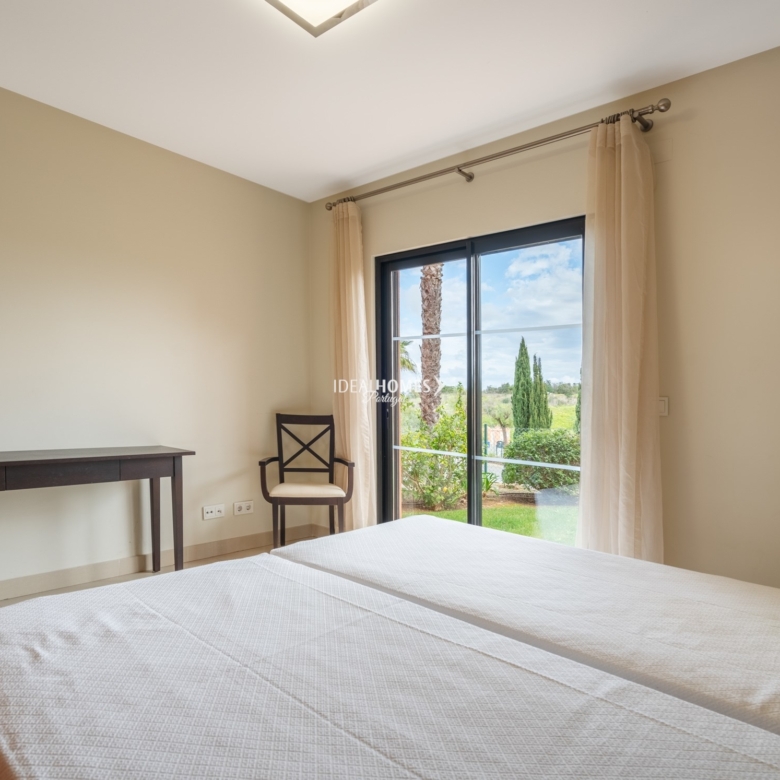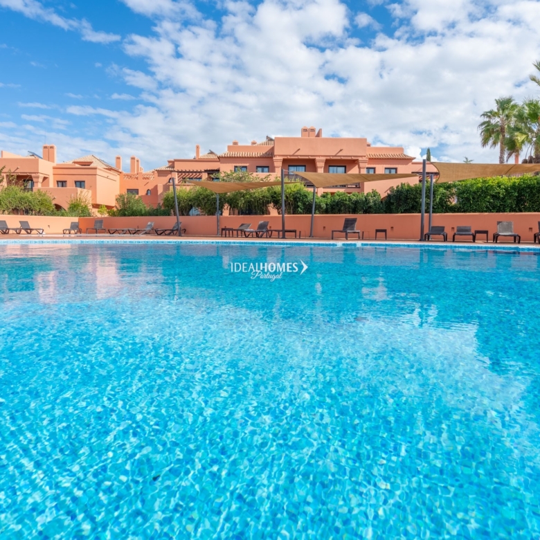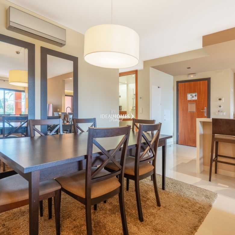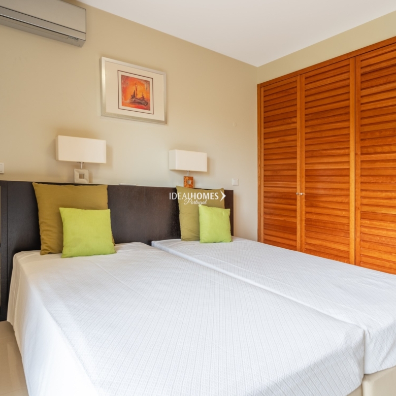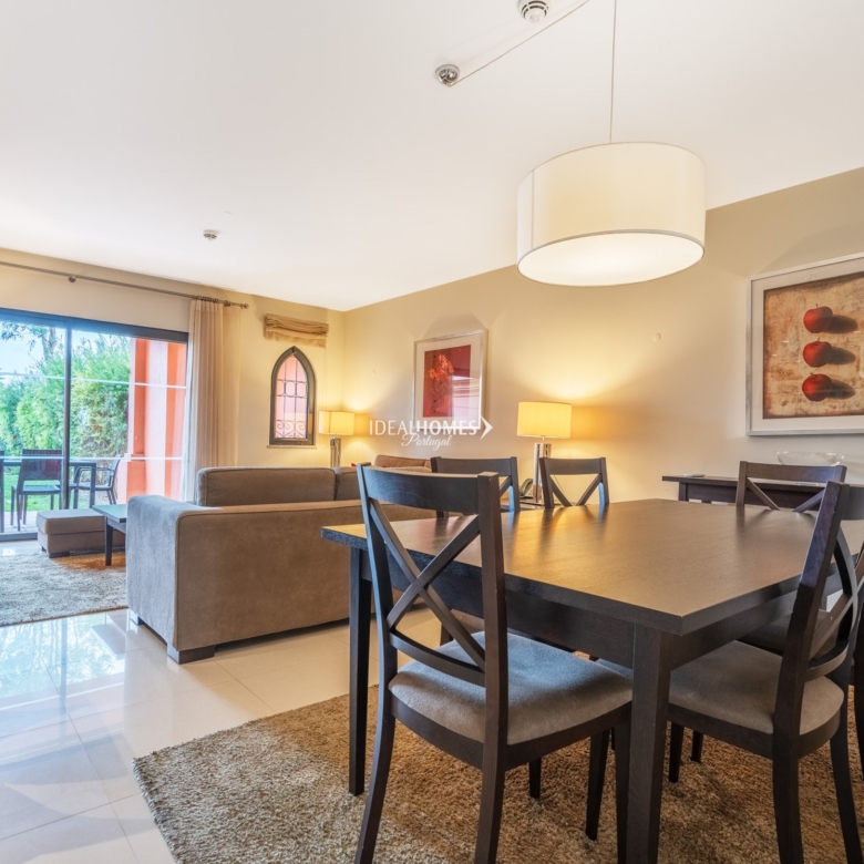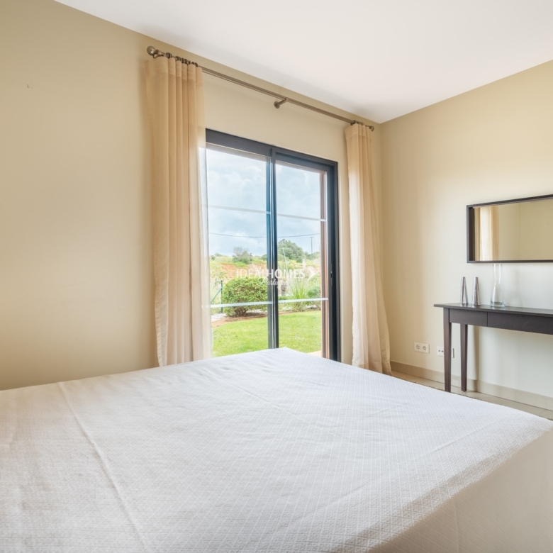 This two bedroom apartment for sale is nestled within a prestigious golf resort in Alcantarilha, offering a harmonious blend of tranquillity and luxury just 10 minutes away from the beach. Boasting serene views of lush green gardens and convenient access to communal amenities, this property epitomises resort-style living in the Algarve. Upon entering, you are greeted by a spacious open plan lounge and dining area that seamlessly connects to a charming seating area in the garden, offering tranquil vistas of the landscaped grounds and providing direct access to the pool. The fully fitted kitchen is equipped with modern appliances and offers ample space for cooking and dining. Two generously sized bedrooms, including one with an en-suite bathroom, along with a separate bathroom, ensure comfort and convenience for residents. Externally, the communal gardens are meticulously landscaped, and two large swimming pools beckon residents to enjoy refreshing dips on hot days, providing the perfect oasis for relaxation. For those seeking an active lifestyle, the resort offers an array of amenities designed to cater to every interest and preference. Two championship golf courses, a golf academy, a professional gym, tennis court, two football pitches, and a sports bar provide ample opportunities for recreation and socialisation. Additional features include: air conditioning, heating, electric shutters, fitted wardrobes, double glazed windows, and more. Ideally situated, this apartment benefits from a prime location just a brief 10 minute drive from breathtaking award-winning beaches, a diverse selection of international restaurants, thrilling water parks, bustling shopping centres, and a host of convenient amenities. Whether you’re in search of a permanent residence in the Algarve or a promising investment opportunity in holiday rentals, this remarkable property presents an ideal option. Property ID: IDH33289 Price: €425,000 Property Size: 107.85 m2 Land Area: 135.15 m2 Bedrooms: 2 Bathrooms: 2 Property Type: Apartment Property Status: For Sale