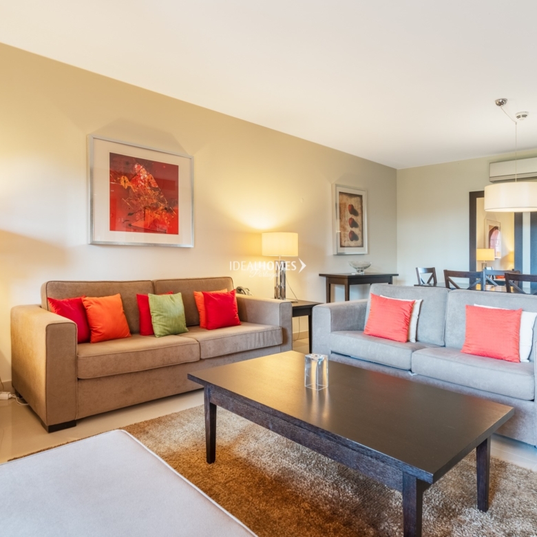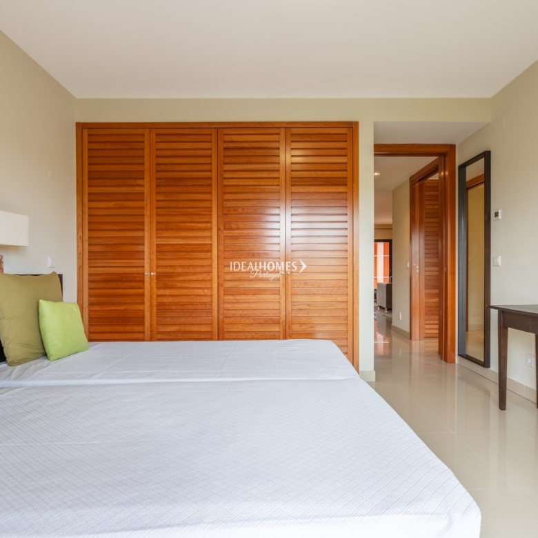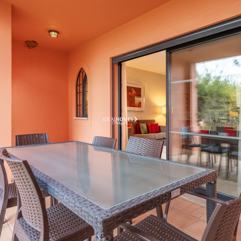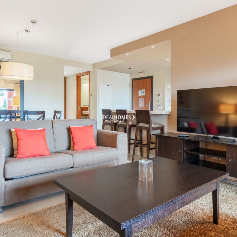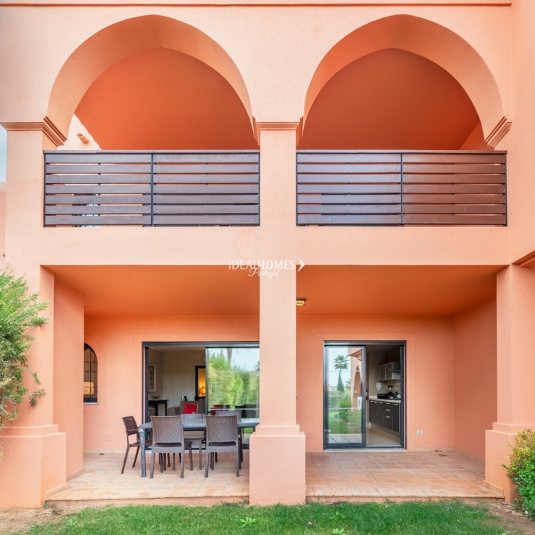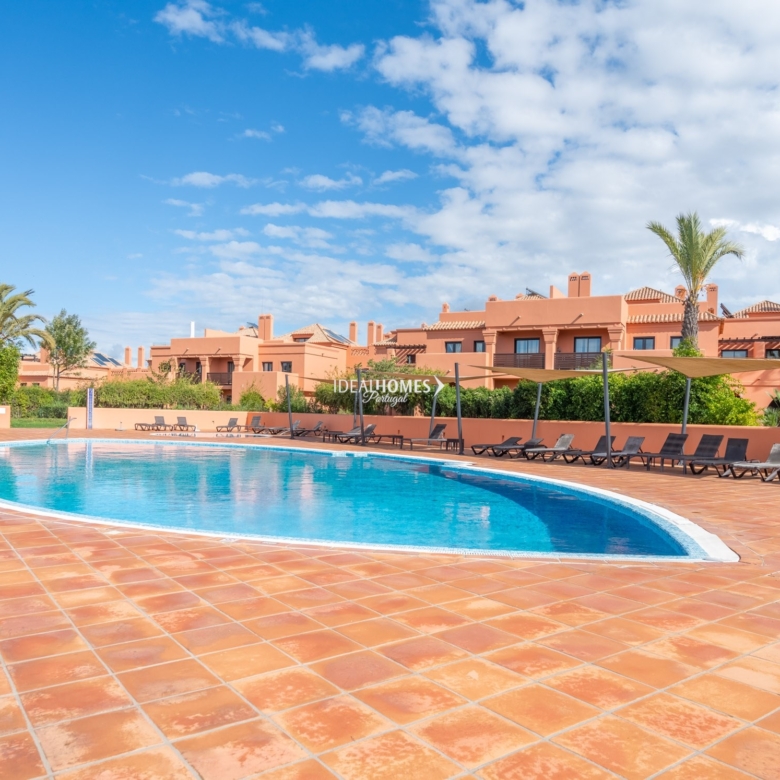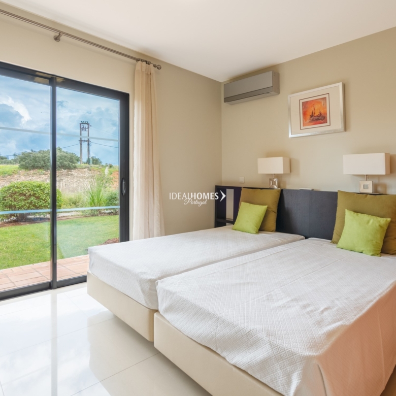 This two bedroom apartment for sale is nestled within a prestigious golf resort in Alcantarilha, offering a harmonious blend of tranquillity and luxury just 10 minutes away from the beach. Boasting serene views of lush green gardens and convenient access to communal amenities, this property epitomises resort-style living in the Algarve. Upon entering, you are greeted by a spacious open plan lounge and dining area that seamlessly connects to a charming seating area in the garden, offering tranquil vistas of the landscaped grounds and providing direct access to the pool. The fully fitted kitchen is equipped with modern appliances and offers ample space for cooking and dining. Two generously sized bedrooms, including one with an en-suite bathroom, along with a separate bathroom, ensure comfort and convenience for residents. Externally, the communal gardens are meticulously landscaped, and two large swimming pools beckon residents to enjoy refreshing dips on hot days, providing the perfect oasis for relaxation. For those seeking an active lifestyle, the resort offers an array of amenities designed to cater to every interest and preference. Two championship golf courses, a golf academy, a professional gym, tennis court, two football pitches, and a sports bar provide ample opportunities for recreation and socialisation. Additional features include: air conditioning, heating, electric shutters, fitted wardrobes, double glazed windows, and more. Ideally situated, this apartment benefits from a prime location just a brief 10 minute drive from breathtaking award-winning beaches, a diverse selection of international restaurants, thrilling water parks, bustling shopping centres, and a host of convenient amenities. Whether you’re in search of a permanent residence in the Algarve or a promising investment opportunity in holiday rentals, this remarkable property presents an ideal option. Property ID: IDH33289 Price: €425,000 Property Size: 107.85 m2 Land Area: 135.15 m2 Bedrooms: 2 Bathrooms: 2 Property Type: Apartment Property Status: For Sale
