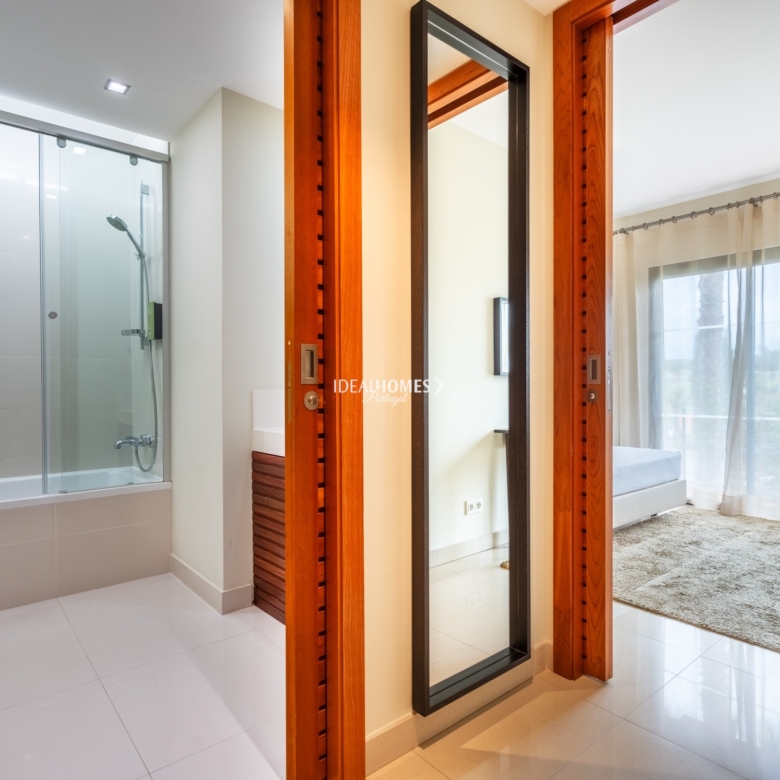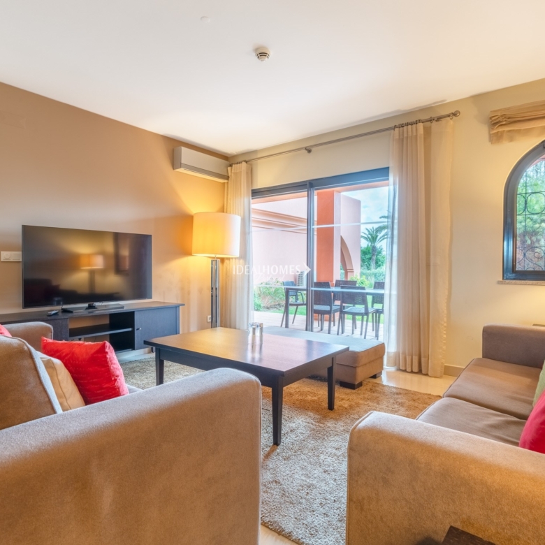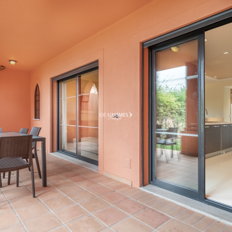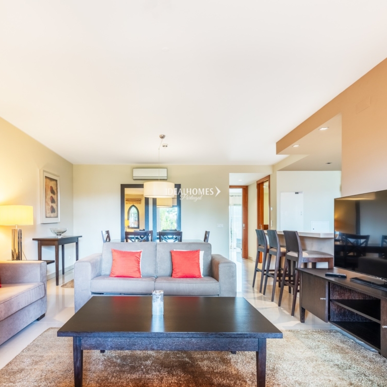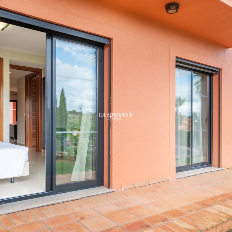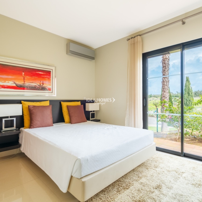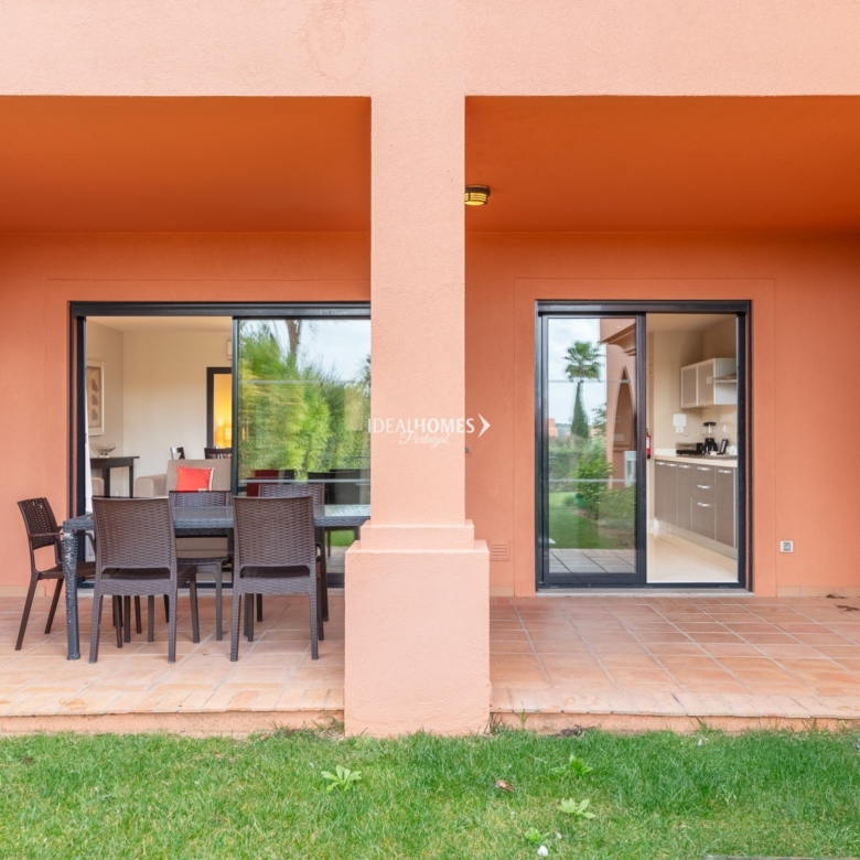 This two bedroom apartment for sale is nestled within a prestigious golf resort in Alcantarilha, offering a harmonious blend of tranquillity and luxury just 10 minutes away from the beach. Boasting serene views of lush green gardens and convenient access to communal amenities, this property epitomises resort-style living in the Algarve. Upon entering, you are greeted by a spacious open plan lounge and dining area that seamlessly connects to a charming seating area in the garden, offering tranquil vistas of the landscaped grounds and providing direct access to the pool. The fully fitted kitchen is equipped with modern appliances and offers ample space for cooking and dining. Two generously sized bedrooms, including one with an en-suite bathroom, along with a separate bathroom, ensure comfort and convenience for residents. Externally, the communal gardens are meticulously landscaped, and two large swimming pools beckon residents to enjoy refreshing dips on hot days, providing the perfect oasis for relaxation. For those seeking an active lifestyle, the resort offers an array of amenities designed to cater to every interest and preference. Two championship golf courses, a golf academy, a professional gym, tennis court, two football pitches, and a sports bar provide ample opportunities for recreation and socialisation. Additional features include: air conditioning, heating, electric shutters, fitted wardrobes, double glazed windows, and more. Ideally situated, this apartment benefits from a prime location just a brief 10 minute drive from breathtaking award-winning beaches, a diverse selection of international restaurants, thrilling water parks, bustling shopping centres, and a host of convenient amenities. Whether you’re in search of a permanent residence in the Algarve or a promising investment opportunity in holiday rentals, this remarkable property presents an ideal option. Property ID: IDH33289 Price: €425,000 Property Size: 107.85 m2 Land Area: 135.15 m2 Bedrooms: 2 Bathrooms: 2 Property Type: Apartment Property Status: For Sale