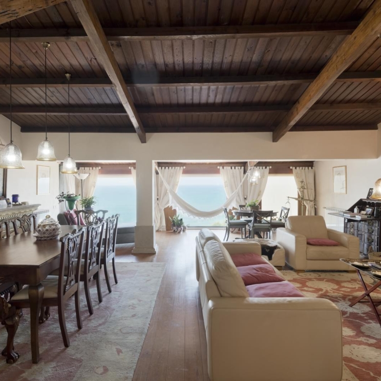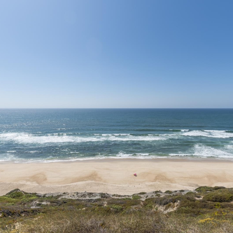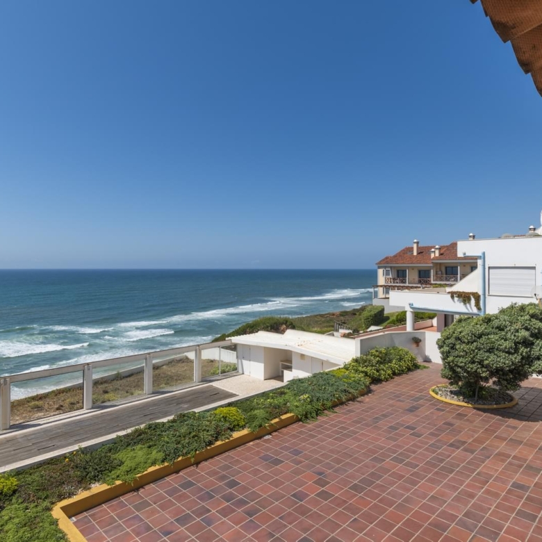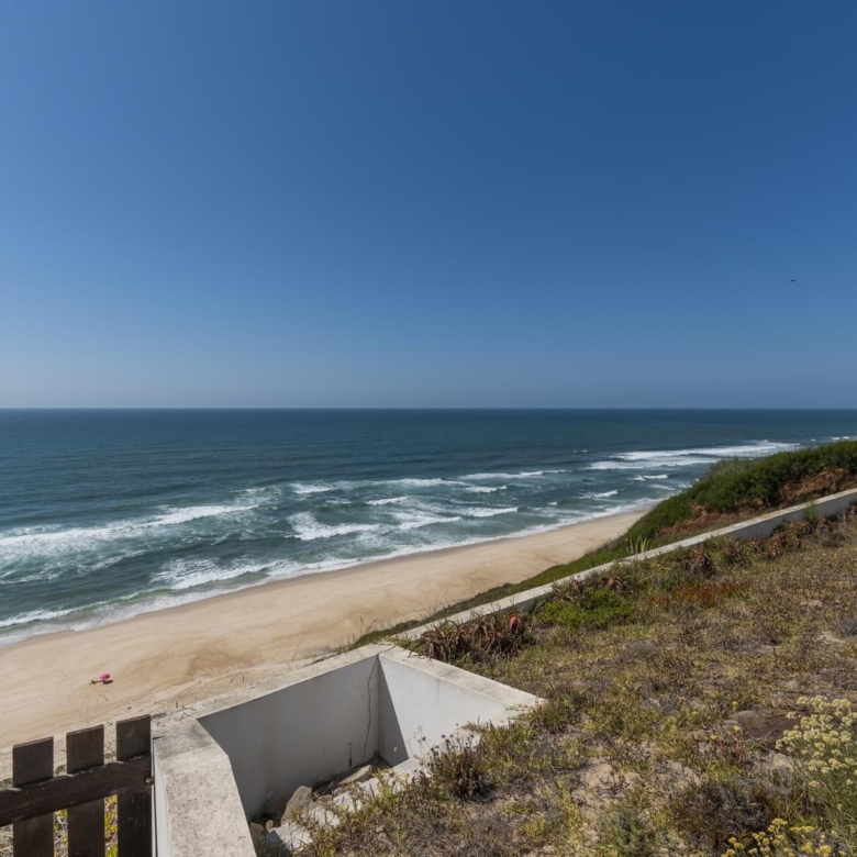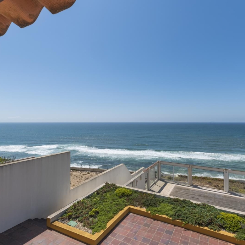 At Praia da Pedra do Ouro, 13 Km North of Nazare and its canyon and 4 Km South of Sao Pedro de Moel, this property, composed by two floors, is built right on top of the sea. The plot of land, with 1.265 sqm, has the garden facing East and a solarium/swimming pool facing West. Four suites, seven bathrooms (two of them outside), two living rooms with fireplace, laundry area, office, central heating and ambient sound in all the rooms, frame the essence of the house’s interior (505 sqm gross construction area). What cannot be described is the unique view over the Atlantic Ocean. A few minutes away, on foot, from the beach and integrated in a quiet and privileged area (bicycle paths, abundant vegetation, several beaches, excellent road accesses and close to everything), this house, which dates from 1971, was deeply restored, expanded and modernised a few years ago. Located in the municipality of Alcobaca, district of Leiria, 130 Km north of Lisbon, this house is part of a region rich in History, close to the caves of the Natural Park of Serras de Aire and Candeeiros and with a reputable gastronomic variety (including the conventual sweets). The quality of the property and its position over the beach and the sea are undoubtedly exceptional Porta da Frente Christie’s is a real estate agency that has been operating in the market for more than two decades. Its focus lays on the highest quality houses and developments, not only in the selling market, but also in the renting market. The company was elected by the prestigious brand Christie’s – one of the most reputable auctioneers, Art institutions and Real Estate of the world – to be represented in Portugal, in the areas of Lisbon, Cascais, Oeiras, Sintra and Alentejo. The main purpose of Porta da Frente Christie’s is to offer a top-notch service to our customers. Property ID: PDF-PF28366 Price: €1,100,000 Property Size: 388.88 m2 Land Area: 1265.0 m2 Bedrooms: 4 Bathrooms: 4