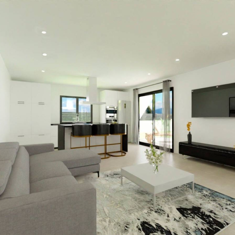 One floor villas in Alenda Golf, Alicante Villas with plots of 108m2 or 128m2. Located in the prestigious La Capitana urbanization, this property offers you a unique and quality living experience. On plots from 618m2, providing you with ample space to enjoy both indoors and outdoors. The property is distributed in two large areas: Day area: Where we find a large living-dining room with open plan kitchen (kitchen furniture included) that connects with the large porch of modern character through its two large windows, leading to the outdoor garden area. Light floods every corner thanks to the large windows in the living room, which open onto the porch, a modern and functional space that invites you to enjoy the outdoors to the full. *Optional swimming pool Sleeping area: In this area there are 3 bedrooms. The master bedroom has a large dressing room and en-suite bathroom. There is also a second bathroom to serve the rest of the bedrooms and living area. In Alenda Golf, you will not only find a residential community, but also a place where nature and elegance are intertwined to offer you an incomparable lifestyle. Whether you wish to establish your permanent residence, enjoy a holiday home or invest in your future, this villa is perfect for you. Property ID: GH-307697-D Price: €320,000 Property Size: 129 m2 Land Area: 618 m2 Bedrooms: 3 Bathrooms: 2 Property Type: Villa Property Status: For Sale