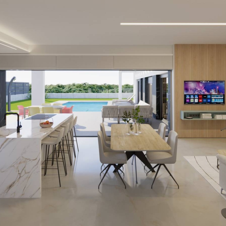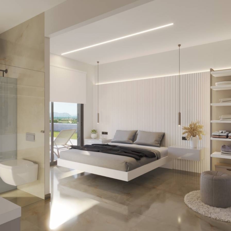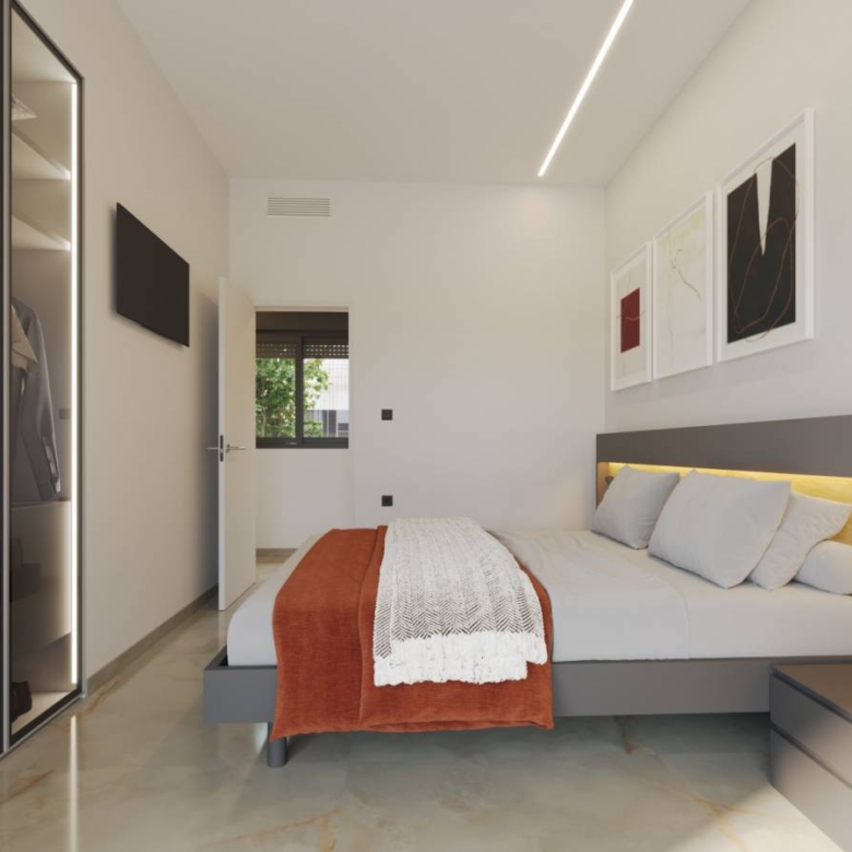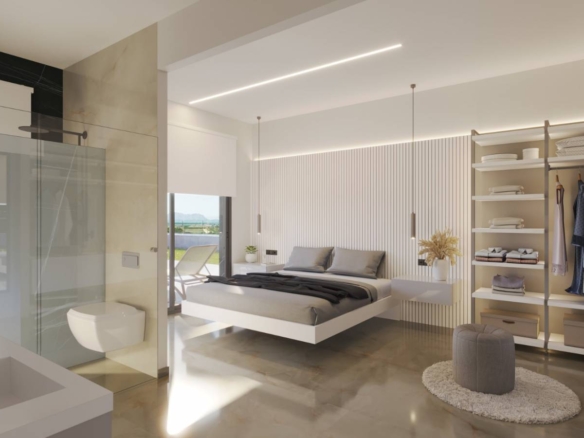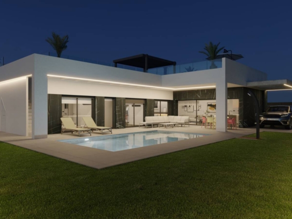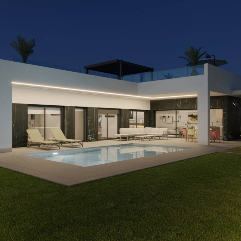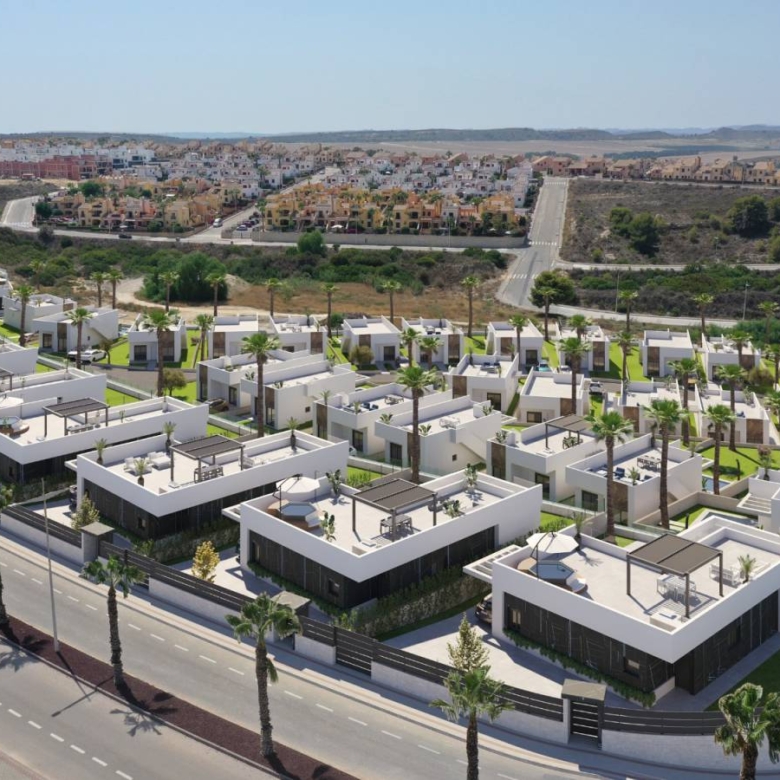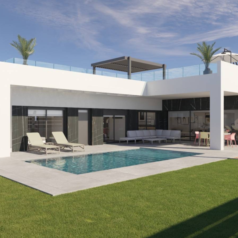 Villas for sale in La Finca Golf, Algorfa, Costa Blanca These homes will form a complex made up of 40 independent chalets. We offer the option of 3 bedrooms and 2 bathrooms or 4 bedrooms and 3 bathrooms giving the best exterior and interior design. A house located within a large independent plot of approximately 500m2, which also includes a large living room-kitchen facing the terrace, private pool, solarium, parking area and garden areas. The residential is located in the La Finca Golf Resort Urbanization, belonging to the town of Algorfa, south of Alicante and very close to Torrevieja and Orihuela Costa. It is a perfect urbanization, surrounded by nature, where you will find a wide range of leisure and sports services, such as its 18-hole golf course, considered one of the best in the area. Its proximity to the sea also means that our villas are in a perfect enclave to enjoy both the mountains and the best beaches. Property ID: GH-24207 Price: €585,000 Property Size: 122 m2 Land Area: 479 m2 Bedrooms: 3 Bathrooms: 2 Property Type: Villa Property Status: For Sale