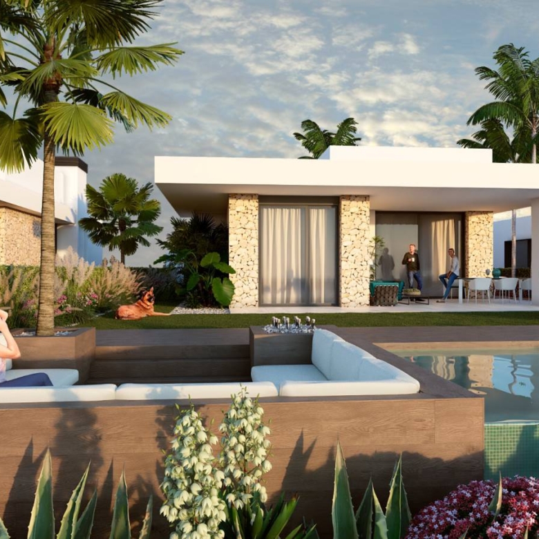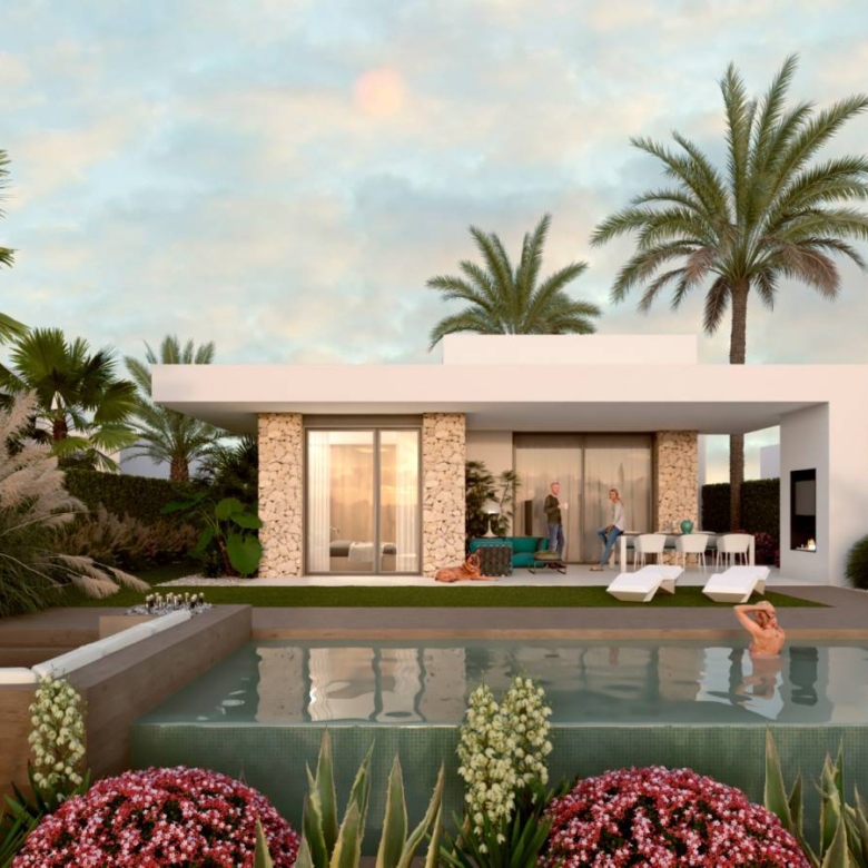Luxury villas in La Finca Golf, Algorfa, Costa Blanca These luxurious new construction villas are located in a quiet area, with a multitude of services and excellent road connections. 5 min. from the town of Algorfa, 15 min. from Guardamar beach and 30 km from Alicante airport. We have 2 different housing models: Aruba model: House on one floor, 3 bedrooms, 2 bathrooms, living room, kitchen, private garden and pool, barbecue area and basement with garage for 2 vehicles.Mustique Model: Housing distributed over 2 floors, with 3 bedrooms, 3 bathrooms, living room, kitchen, terrace, barbecue area, private garden and pool, basement with garage for 2 vehicles. Both typologies provide all the comforts, private infinitive pool, underground parking, a large garden and magnificent views of hole 2 of La Finca Golf. Ducted air conditioning installation in all roomsUnderfloor heating throughout the houseHome automation system installationComplete screens in showersMirrors in bathroomsMaster bedroom with walk-in closetBasement with finished garagePrivate garden and barbecue areaPrivate infinity pool with relaxation area Estimated delivery date: 15 MONTHS from the signing of the contractLa Finca Urbanization is located in the heart of the rural area of Vega Baja, a few minutes from the small town of Algorfa. And it is a perfect place for those who seek the tranquility of living among magnificent landscapes, breathing pure air from the mountains. The walks in the open air among the orange and lemon groves are very pleasant. The recently opened Hotel La Finca Golf and Spa Resort (5 *) guarantees a wonderful experience of total relaxation in its new facilities. The best beaches are just 20 minutes from the urbanization. Property ID: GH-307246 Price: €1,190,000 Property Size: 344 m2 Land Area: 464 m2 Bedrooms: 3 Bathrooms: 2 Property Type: Villa Property Status: For Sale