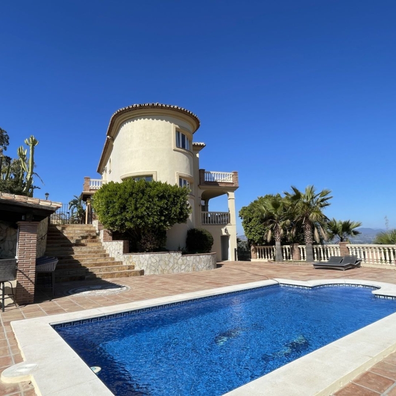This impressive villa is situated in a prime location, overlooking the picturesque village of Alhaurin el Grande and offering breathtaking views of the surrounding mountains. The property features four spacious bedrooms and three modern bathrooms, as well as a comfortable living room and a well-equipped kitchen with plenty of space for cooking and dining. Outside, there is a large pool and barbecue area, perfect for entertaining guests or enjoying the sunny climate and the incredible views. In addition, the property includes a separate guest apartment with one bedroom, a living room, and a kitchen, providing plenty of space for visitors or extended family. Conveniently located just 30 minutes from the vibrant city of Malaga and its international airport, this stunning villa is the perfect combination of luxury, comfort, and convenience. Whether you’re looking for a peaceful retreat or a base from which to explore the stunning Andalusian countryside, this property is sure to impress. Property ID: ICPF4272535 Price: €849,000 Property Size: 327 m2 Land Area: 5941 m2 Bedrooms: 5 Bathrooms: 4 Property Type: Country house Property Status: For Sale