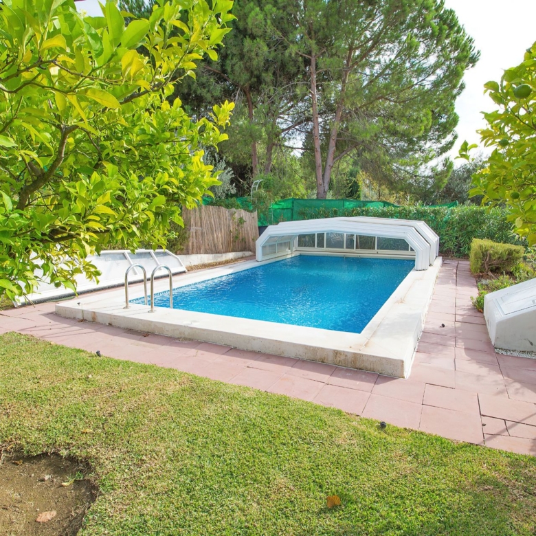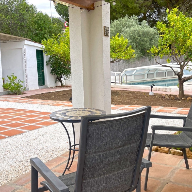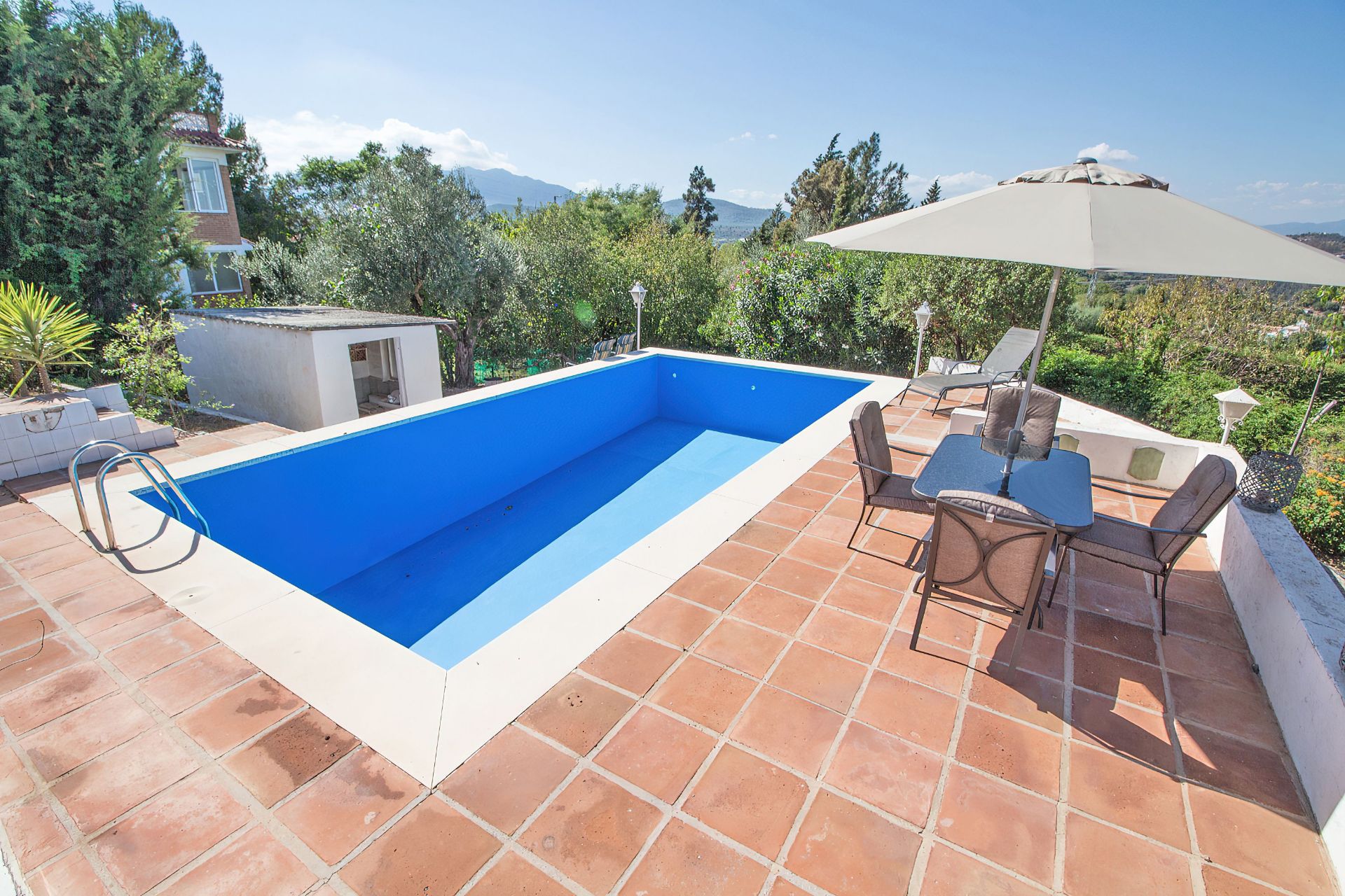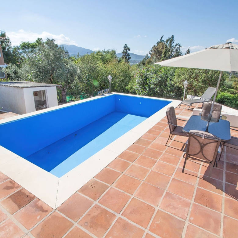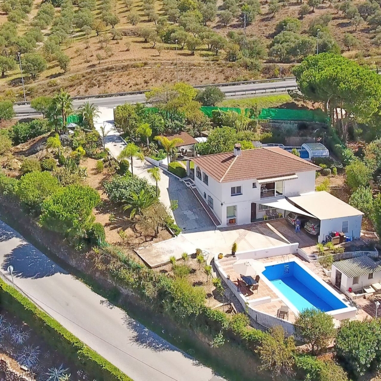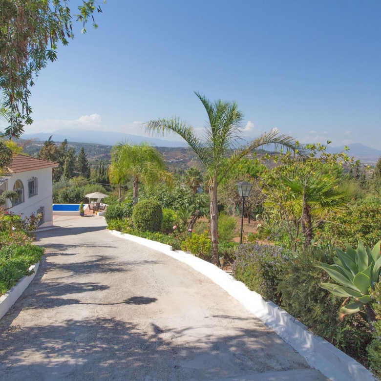 This beautiful detached country house is situated just 1km from the bustling town of Alhaurin El Grande and the famous Alhaurin Golf Course. It is a rare find as you have the benefits of a country house with the ability to walk into the village or to the golf course. The house has been recently renovated and divided into 2 separate living areas. The top floor comprises 3 bedrooms (one has an ensuite bathroom), family bathroom, WC, fully fitted kitchen and a stunning living-dining room with log burner. The living room has a full-height window making it very bright and airy as well as offering panoramic views to the valley. The ground floor features a large open plan living room, ideal for family and guests, a modern kitchen which has recently been installed, and a very large master bedroom with ensuite wet room. The property benefits from 2 swimming pools (one for each floor) with mature gardens and incredible views to the valley and mountains. Finished to a very high standard, this is a ‘must see’ property for an extended family or for use as a potential B&B business. Property ID: ICPF4771864 Price: €549,000 Property Size: 240 m2 Land Area: 2509 m2 Bedrooms: 4 Bathrooms: 4 Property Type: Country house Property Status: For Sale