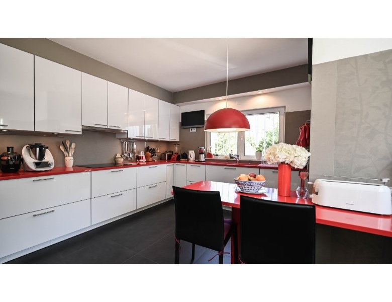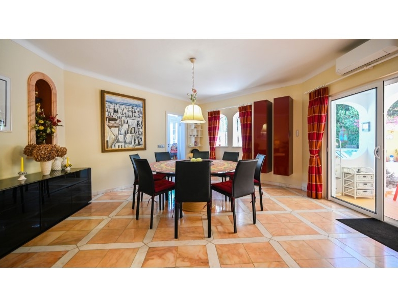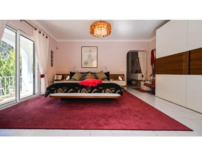 Nestled in a serene cul-de-sac, this traditional yet grand villa is strategically designed to optimize the plot’s potential and boasts expansive spaces and green areas. On the lower level, you’ll find a garage with storage facilities. Ascending to the ground floor, there are two bedrooms, each with its ensuite bathroom and access to terraces. The top-level features a generously sized living area that opens onto terraces on both sides. One side offers views of the lush greenery and private garden, while the other overlooks the pool terrace. Additionally, this level includes a fully equipped kitchen with a pantry, a dining area, an office room, a guest toilette with shower and the master suite, complete with private bathroom, fitted wardrobes and access to terraces. The plot has great area of more with more than 1.400m2 with mature gardens and fruit trees and also profits of some adopted land with approx. 500m2, giving a sensation of space and amplitude. Situated just 800 meters away from the beach, this property is an amazing option for both holidays or as a retreat in an exceptionally tranquil area. Features Outside Balcony Energy & utilities Energy consumption rating: B Emissions rating: B Property ID: golden2222 Price: €2,850,000 Property Size: 357 m2 Bedrooms: 3 Bathrooms: 4 Property Type: Villa Property Status: For Sale