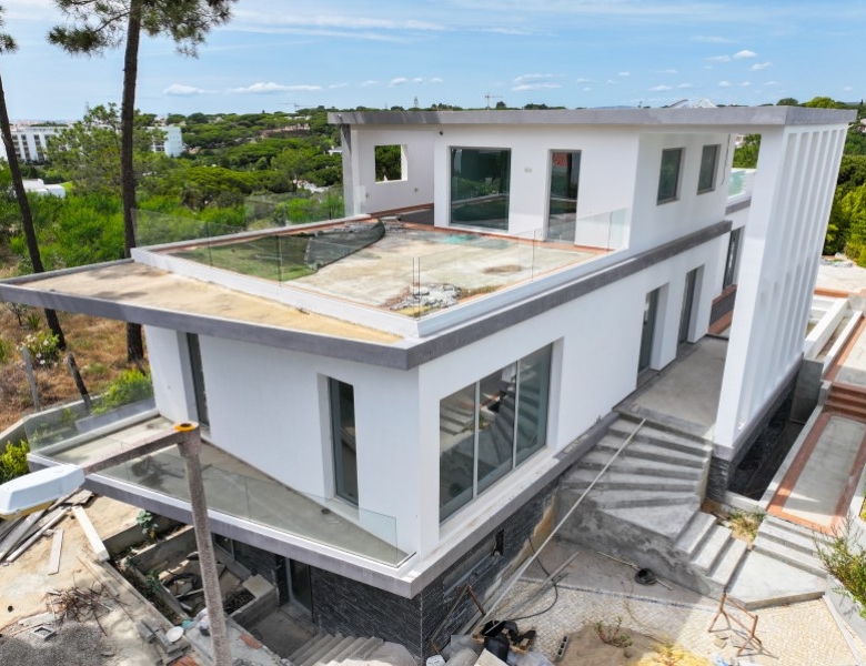 Situated at easy walking distant from the Beach and the Praca of Vale do Lobo this very light modern villa make the ideal holiday home. The very large roof terrace offers spectacular Ocean views over the fairway. Large entertaining areas and its own Cinema room make this property ideal for the modern day family. The property consists of: Entrance into large lounge dining room with American style open kitchen and a pantry. On the same floor you find the very spacious master bedroom with private bathroom. The lower floor Offers: Circulation area / Games room with large windows to the pool giving lots of day light. 3 bedrooms all with private bathrooms. Office and a specially designed Cinema room. All lower floor rooms have day light through large windows. The first floor offers: Office and access to the roof area with BBQ area and sun terraces and a small plunge pool. The gardens Offer: Private parking area, Sun terraces, Swimming pool with windows to the lower areas, landscaped gardens. Further features are: Large sliding terrace doors with 300 M height, Under floor heating trough out, Air-conditioning through out. Features Location Close to shops Parking Garage, Parking Energy & utilities Energy consumption rating: A Emissions rating: A Property ID: goldenppvil_764 Price: €4,500,000 Property Size: 490 m2 Bedrooms: 4 Bathrooms: 5 Property Type: Villa Property Status: For Sale