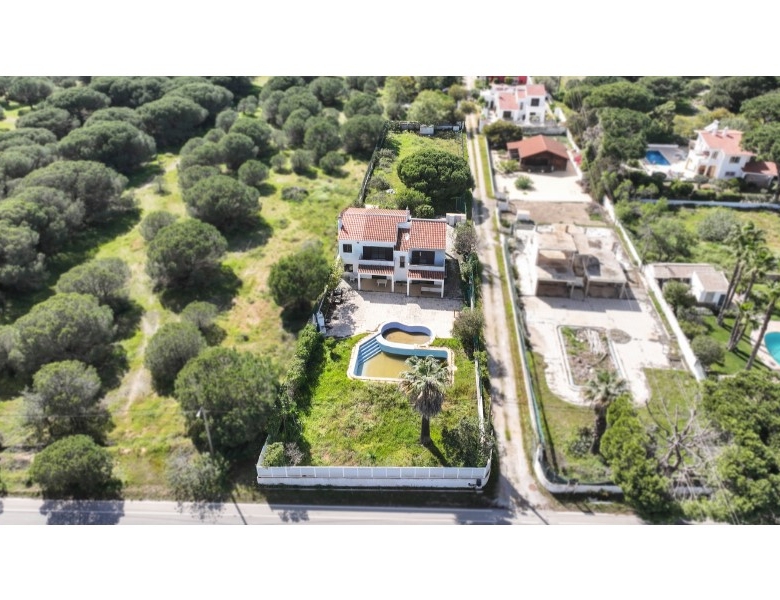 Situated between the prestigious resorts of Quinta do Lago and Vale do Lobo and the vibrant town of Almancil, this property presents an exceptional opportunity for refurbishment or reconstruction. Nestled on an 1800m2 plot, the property boasts a pool and barbecue area, offering a total construction area of 269 m2, spread across two floors, the house awaits transformation. The ground floor comprises a bedroom, a bathroom, a kitchen, two storage rooms, and a spacious dining and living area complete with a fireplace. This inviting space seamlessly connects to a magnificent terrace, with direct access to the swimming pool. Adjacent to the kitchen, an additional room accessible from the garden serves as a practical laundry area. Ascending to the first floor reveals three bedrooms, two of which feature en suite facilities and an additional bathroom. The master bedroom grants access to a splendid terrace, offering views over the pool and the serene pinewood bordering the property. This property is located just a short distance from restaurants, golf, beaches, supermarkets, and all the commodities the Golden Triangle has to offer. Features Pool Pool Location Close to shops Outside Balcony Energy & utilities Energy consumption rating: E Emissions rating: E Property ID: goldens2253 Price: €1,094,000 Property Size: 269 m2 Bedrooms: 4 Bathrooms: 4 Property Type: Villa Property Status: For Sale