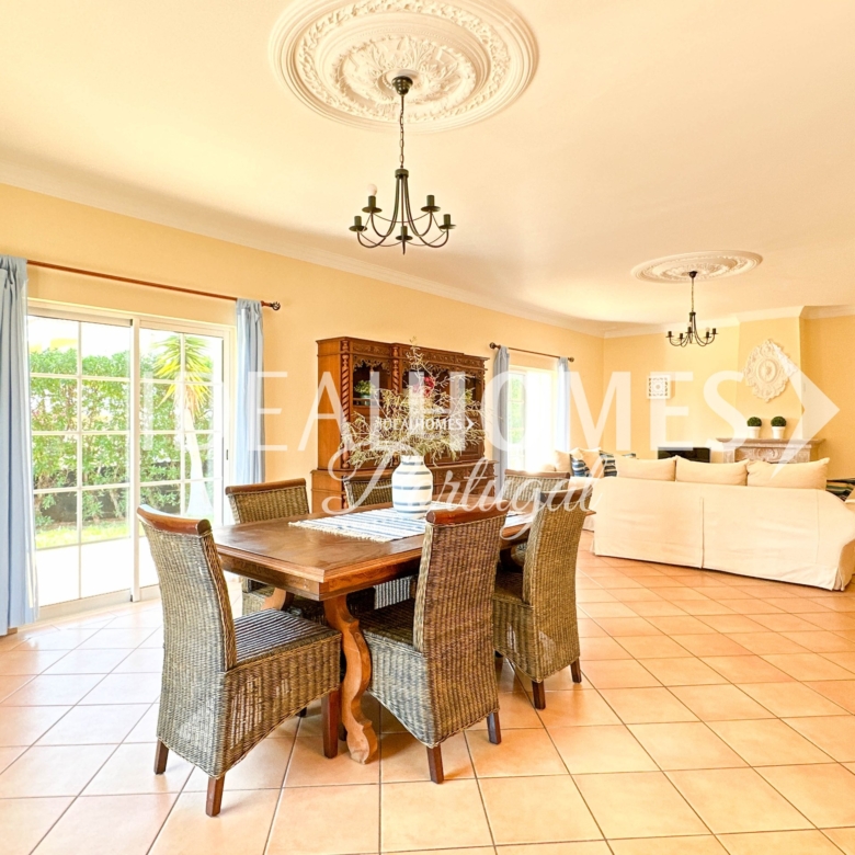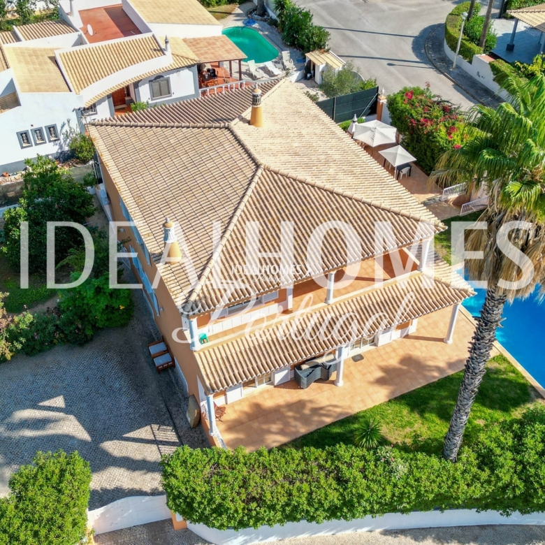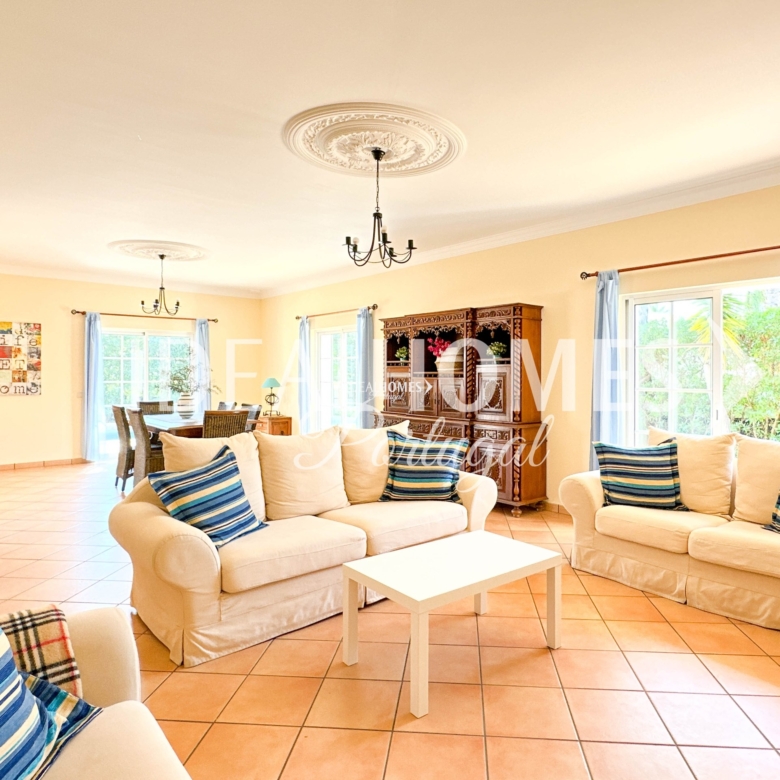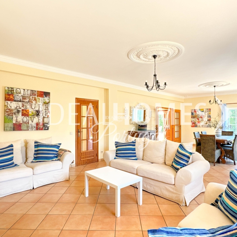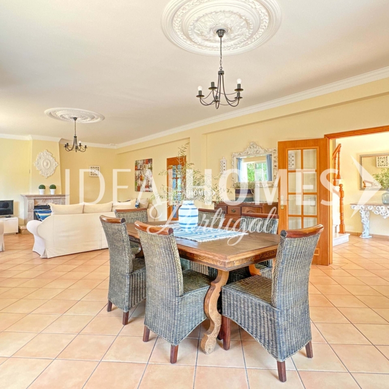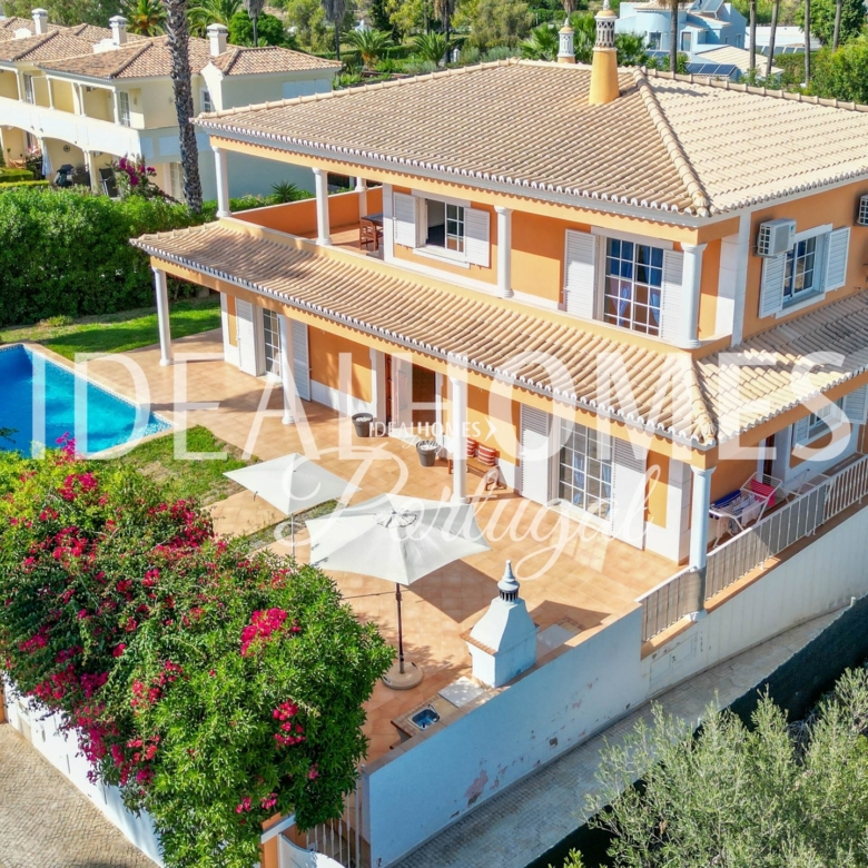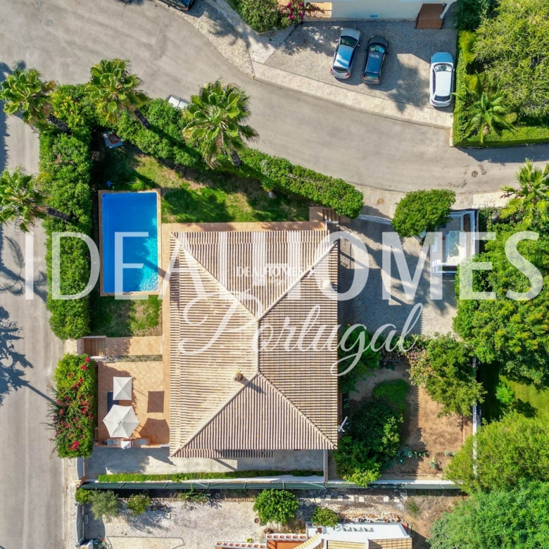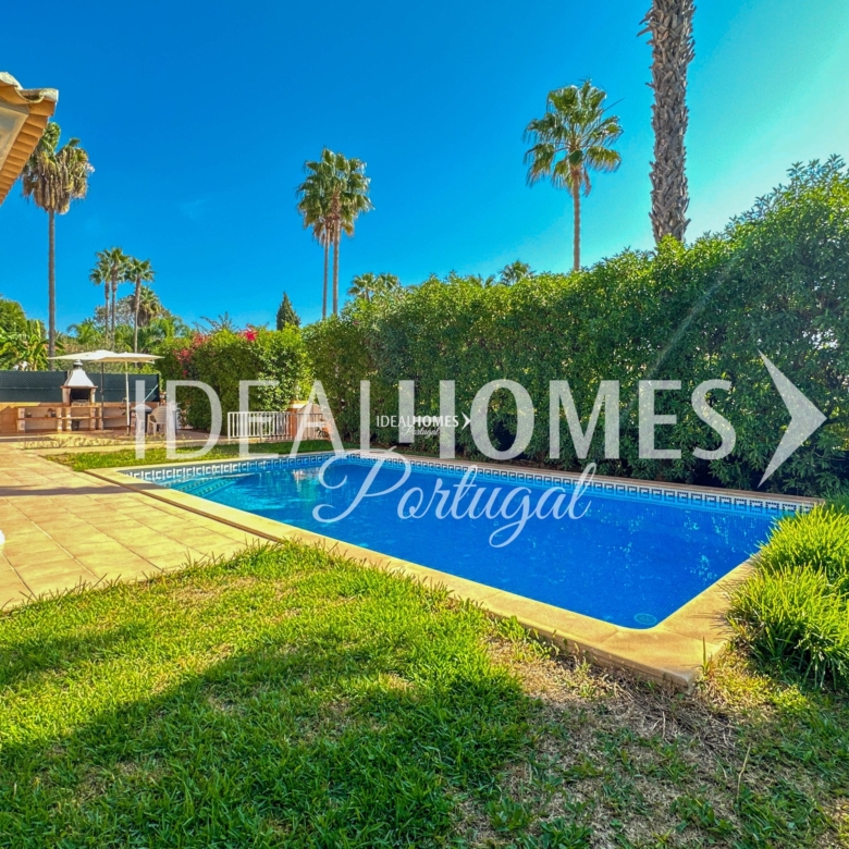 This four bedroom villa for sale is located on the outskirts of Almancil, just a short drive away from all essential amenities and the pristine beaches of Vale do Lobo and Quinta do Lago. Spread across two floors, this villa comprises a large living / dining room featuring a cosy fireplace, a fully equipped kitchen complete with a second dining area, four spacious bedrooms, four bathrooms and a L-shaped terrace on the first floor that provides distant sea views. Outside, this property offers expansive lounge areas for relaxation, a dedicated BBQ space for entertaining, and a large swimming pool, all surrounded by meticulously manicured gardens and fruit trees. Perfectly situated on the southern outskirts of Almancil, this villa grants effortless access to pristine beaches, world-renowned golf courses, and a diverse array of amenities, all just a short drive away. Additionally, the property finds itself a mere eight kilometres from the breathtaking ‘Ria Formosa Natural Park,’ and just a 20 minute drive from Faro International Airport. Property ID: IDH33212 Price: €1,575,000 Property Size: 300.00 m2 Land Area: 705.00 m2 Bedrooms: 4 Bathrooms: 4 Property Type: Villa Property Status: For Sale