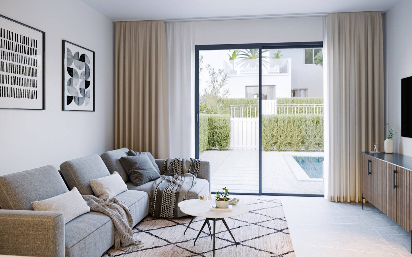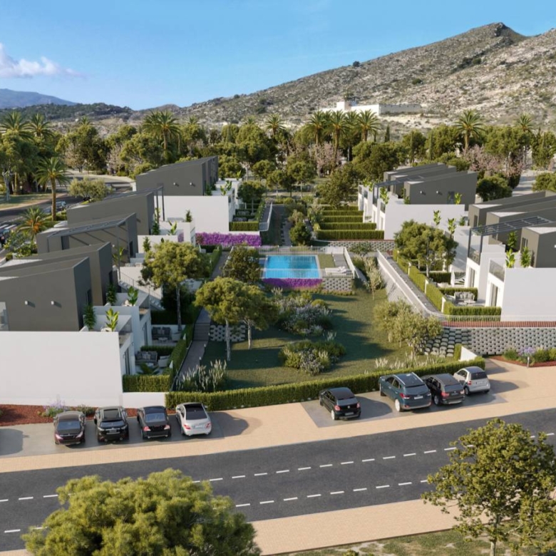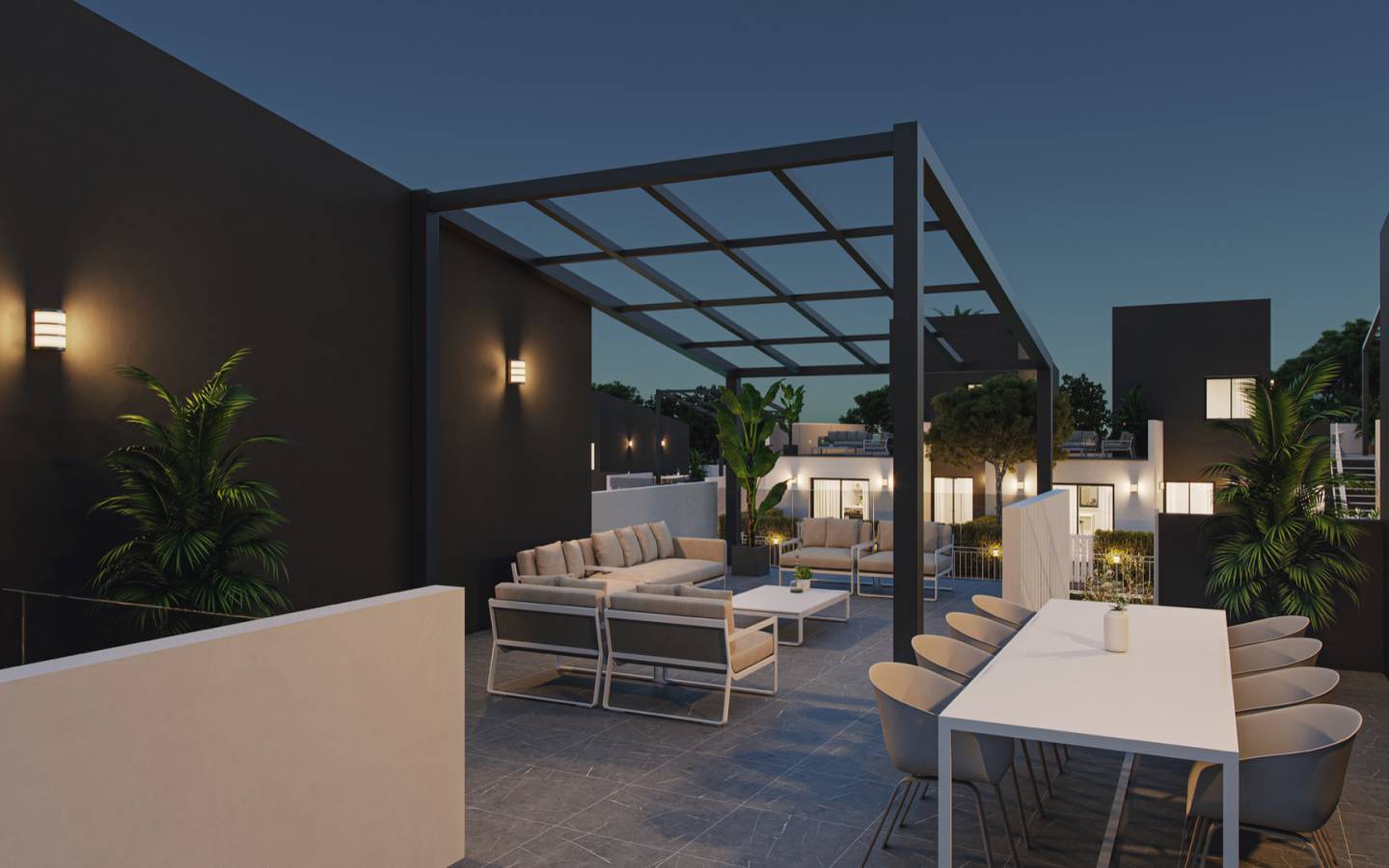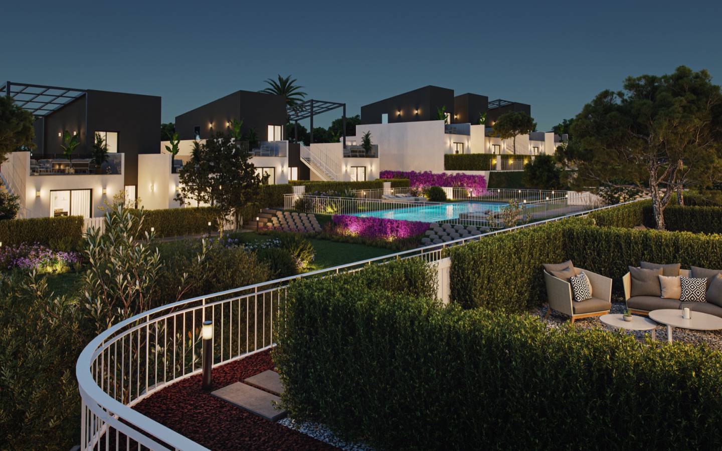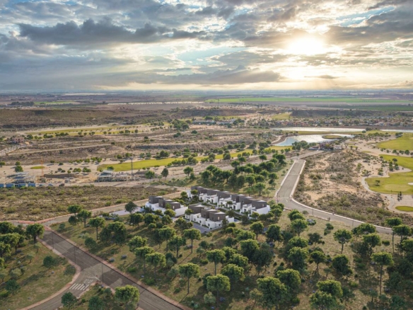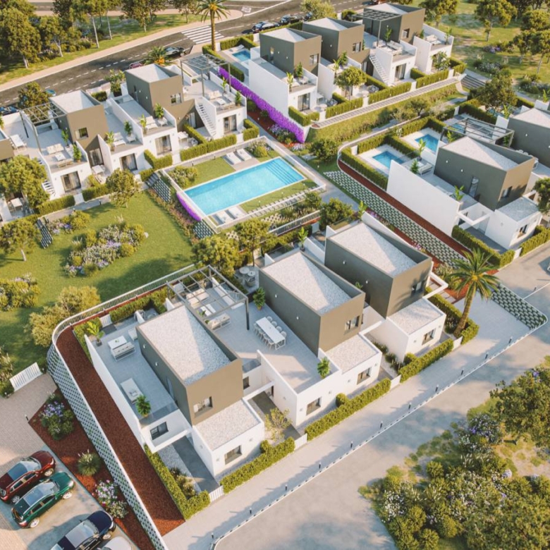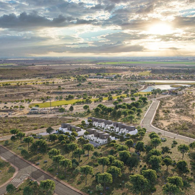Semi-detached villas in Altaona Golf, Murcia, Costa Calida 18 homes on the second line of golf. With plots ranging from 135m2 to 190m2, with optional private pool and community pool and solarium area. The interiors are spacious and bright, designed to allow the entry of Mediterranean light into each room. The open-plan kitchens open onto the living room to turn their use into an enjoyable experience, with friends or family. Each house is crowned by impressive solariums of up to 77m2, from which you can see the landscape of the surrounding mountains, some of them also overlook the golf course. We have 2 types of homes: * Type A: 3 bedrooms, 2 bathrooms* Type B: 2 bedrooms, 2 bathrooms The front and rear gardens surround the houses to beautify their facades, provide freshness to the surrounding area and allow the sun’s rays to penetrate the houses throughout the day. Property ID: GH-307552-D Price: €270,000 Property Size: 105 m2 Land Area: 182 m2 Bedrooms: 3 Bathrooms: 2 Property Type: Villa Property Status: For Sale