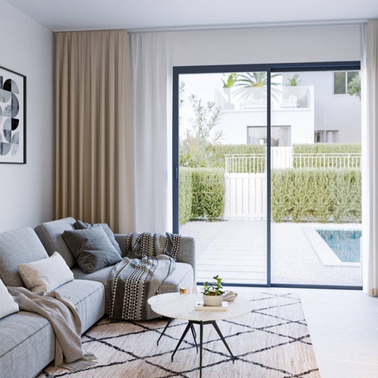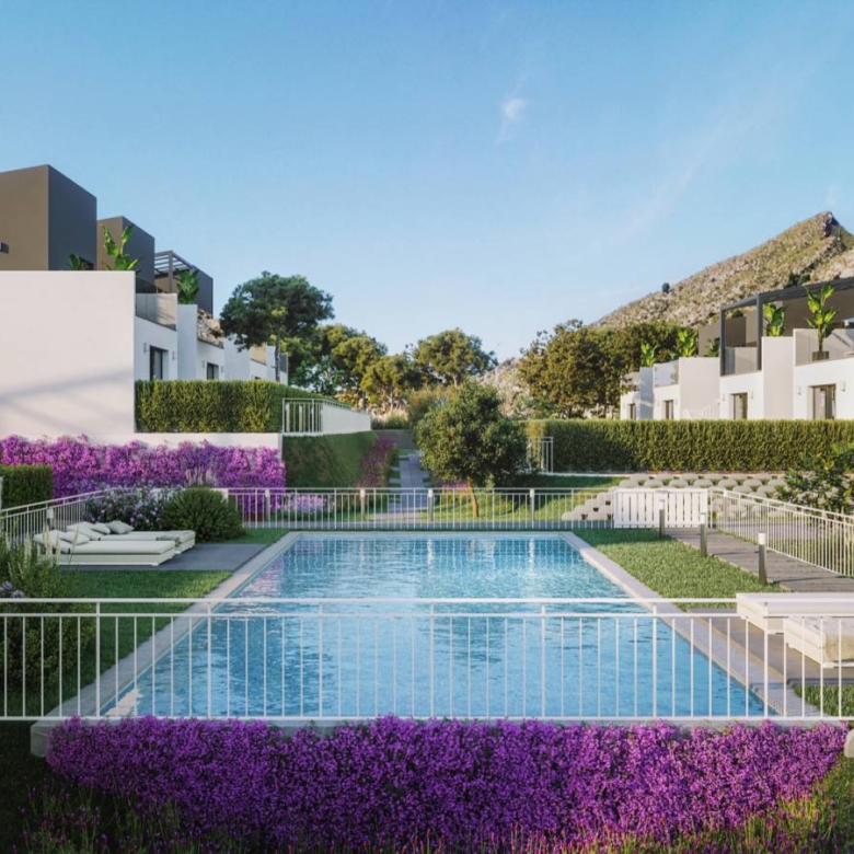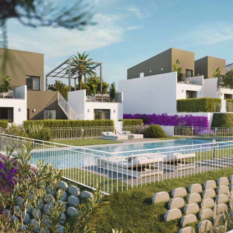 Semi-detached villas in Altaona Golf, Murcia, Costa Calida 18 homes on the second line of golf. With plots ranging from 135m2 to 190m2, with optional private pool and community pool and solarium area. The interiors are spacious and bright, designed to allow the entry of Mediterranean light into each room. The open-plan kitchens open onto the living room to turn their use into an enjoyable experience, with friends or family. Each house is crowned by impressive solariums of up to 77m2, from which you can see the landscape of the surrounding mountains, some of them also overlook the golf course. We have 2 types of homes: * Type A: 3 bedrooms, 2 bathrooms* Type B: 2 bedrooms, 2 bathrooms The front and rear gardens surround the houses to beautify their facades, provide freshness to the surrounding area and allow the sun’s rays to penetrate the houses throughout the day. Property ID: GH-307552 Price: €220,000 Property Size: 76 m2 Land Area: 144 m2 Bedrooms: 2 Bathrooms: 2 Property Type: Villa Property Status: For Sale