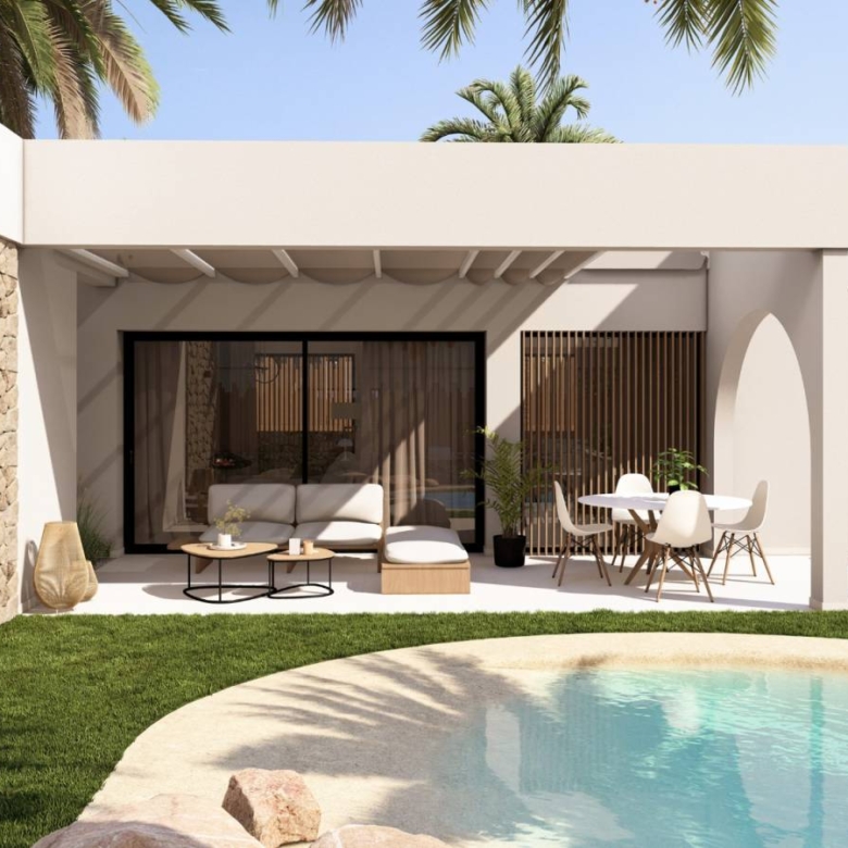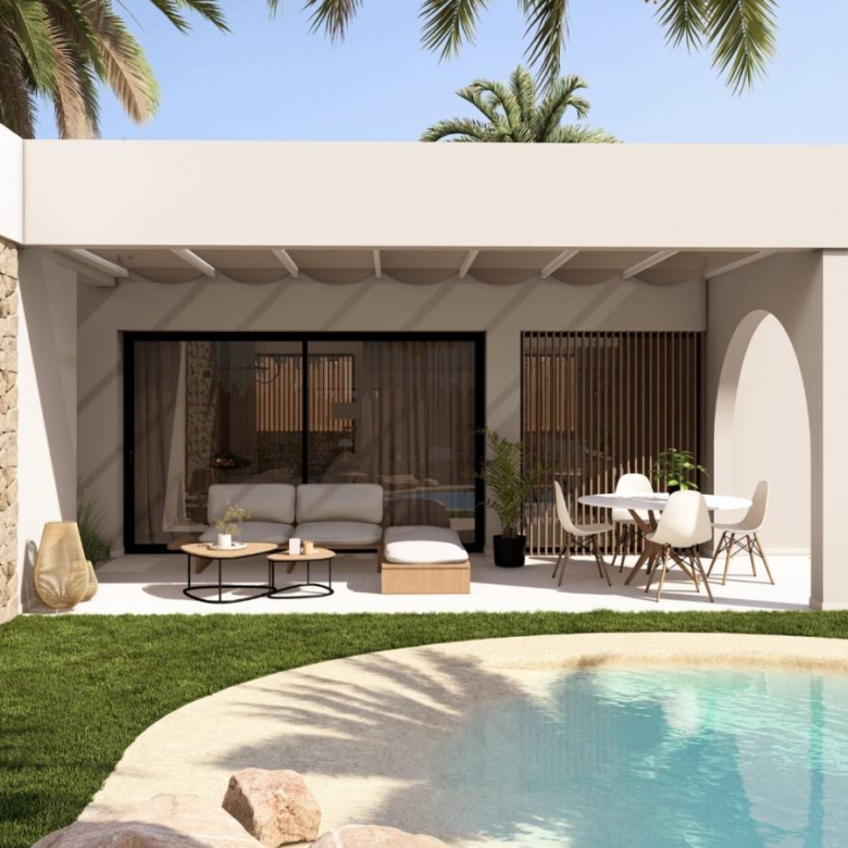 Villas in Altaona Golf, Murcia, Costa Calida Each of these individual residences sits on spacious plots with private garden and swimming pool which, together with their strategic orientation, invite you to enjoy the fresh air and embrace the warm sunlight. Choice of 2 bedrooms, 2 bathrooms and 1 guest toilet or 3 bedrooms, 3 bathrooms and 1 guest toilet. Immerse yourself in this exciting, state-of-the-art residential development of 70 luxury detached villas and discover your own Mediterranean oasis at Altaona Longevity, Sport and Wellness Resort, located in sunny Murcia, southern Spain. Inspired by the world’s most iconic oases, flowing lines and elegant curved forms define the design of this development, creating an ambience of harmony and sophistication that invites the relaxation and enjoyment that only an oasis can provide. Main features: - Private swimming pool and garden.- Optional solar panels- Green roofs- Innovative construction method- A+ energy efficiency- Individual parking Property ID: GH-307792 Price: €340,000 Property Size: 115 m2 Land Area: 438 m2 Bedrooms: 2 Bathrooms: 2 Property Type: Villa Property Status: For Sale