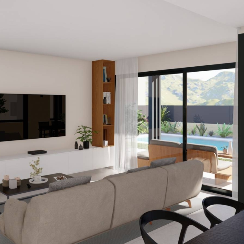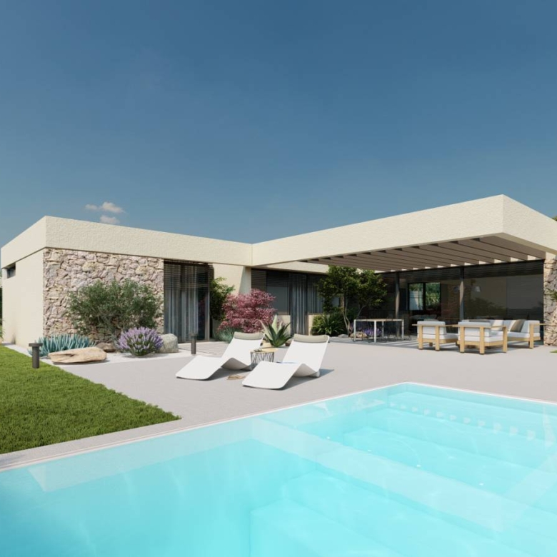 Villas for sale in Altaona Golf, Murcia The residential has different types of homes, ranging from 2 to 5 bedrooms, all built on one floor. Each property has a private swimming pool and the plots range from 350m2 to 600m2. This typology has 3 bedrooms and 3 bathrooms, private swimming pool, terrace, parking space inside the plot. All on one floor These homes are specifically designed to provide endless views of the golf course, lakes and distant countryside, from inside or outside. The south-facing gardens and terraces ensure you can enjoy the warm winter sun, and the generous glass windows provide additional views of the region from the comfort of the interior. - Optimal privacy- Green roofs- Energy efficiency A- Respect for the natural environment- Better design with larger rooms.- Innovative construction method- Common green areas Attractive and energy efficient, intelligently designed interiors combine aesthetics with comfort, efficiency and privacy, all based on a solid construction method and grounded in respect for its surroundings. Property ID: GH-307654 Price: €401,000 Property Size: 119 m2 Land Area: 398 m2 Bedrooms: 3 Bathrooms: 3 Property Type: Villa Property Status: For Sale