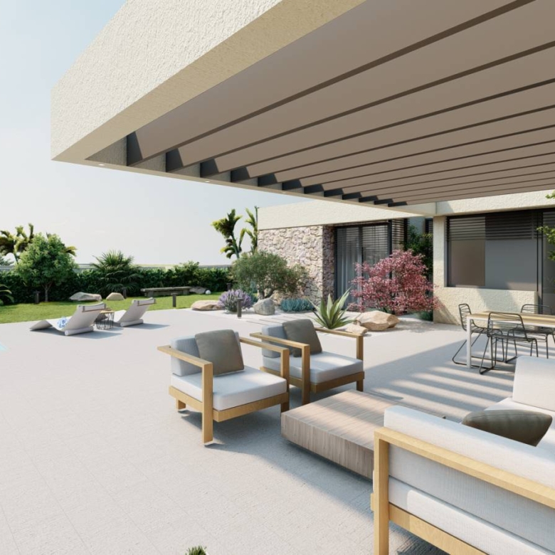 Villas for sale in Altaona Golf, Murcia, Costa Calida This type of villa has 2 bedrooms and 2 bathrooms, private swimming pool, terrace, parking space inside the plot. All on one floor. The residential has different types of homes, ranging from 2 to 5 bedrooms, all built on a single floor. Each property has a private swimming pool and the plots range from 350m2 to 600m2. These homes are specifically designed to provide endless views of the golf course, lakes and distant countryside, from inside or out. South-facing gardens and terraces ensure you can enjoy the warm winter sun, and generous glass windows provide additional views of the region from the comfort of the interior. As important as the location is, the design, construction, layout and experience of the actual homes are, of course, key. In this respect the villas at Las Vistas Altaona do not disappoint. Attractive and energy efficient, with cleverly designed interiors, they combine aesthetics with comfort, efficiency and privacy, all based on a solid construction method and grounded in respect for their surroundings. - Optimal privacy- Green roofs- Energy efficiency A- Respect for the natural environment- Better design with larger rooms.- Innovative construction method- Common green areas and herb gardens Property ID: GH-307649 Price: €343,000 Property Size: 99 m2 Land Area: 353 m2 Bedrooms: 2 Bathrooms: 2 Property Type: Villa Property Status: For Sale