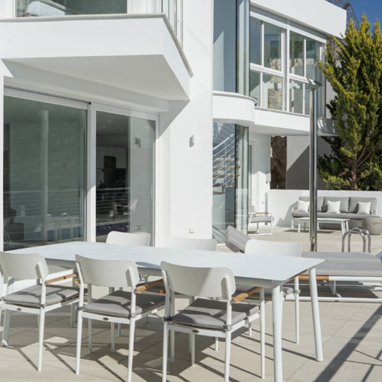 Nice villa in Altea, Costa Blanca, Alicante Residential full of light with large interior spaces, unique architecture and a natural environment with a panoramic view of the Mediterranean Sea and the Benidorm skyline. A closed residential complex, with houses of avant-garde architecture, independent of each other, where each one of them has an exclusive design that makes them a unique piece. The houses stand out for their natural light and their large interior spaces, with layouts of 5 bedrooms, 6 bathrooms, open kitchen, living rooms and dining rooms of various shapes, terrace, swimming pool, barbecue, closed garage and elevator. t has a direct link with the highway, 10 km from Benidorm, and just 50 km from Alicante airport and 100 km from Valencia. The picturesque coastal town of Altea allows us to have all the services and leisure of a big city and, at the same time, enjoy a viewpoint open to nature and the intense blue of the Mediterranean Sea, immersed in a natural environment, which also constitutes the perfect setting for a getaway, a relaxing vacation, or why not, be lucky and make it our home. Property ID: VA-57013 Price: €1,147,861 Property Size: 267 m2 Land Area: 417 m2 Bedrooms: 5 Bathrooms: 6 Property Type: Villa Property Status: For Sale