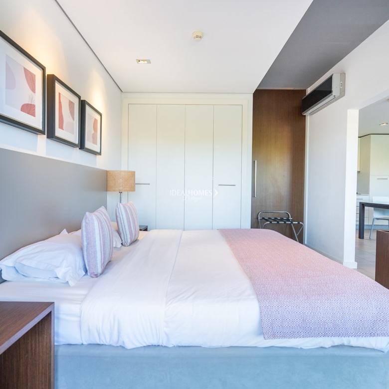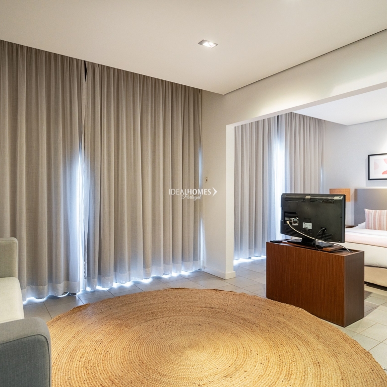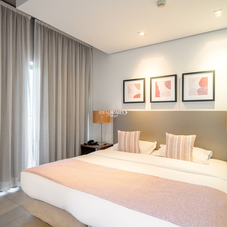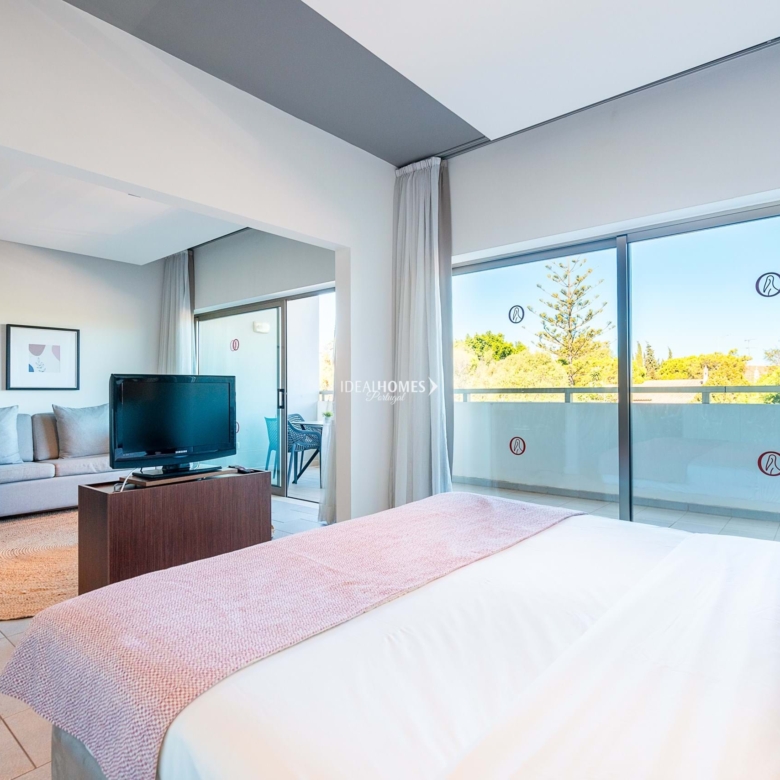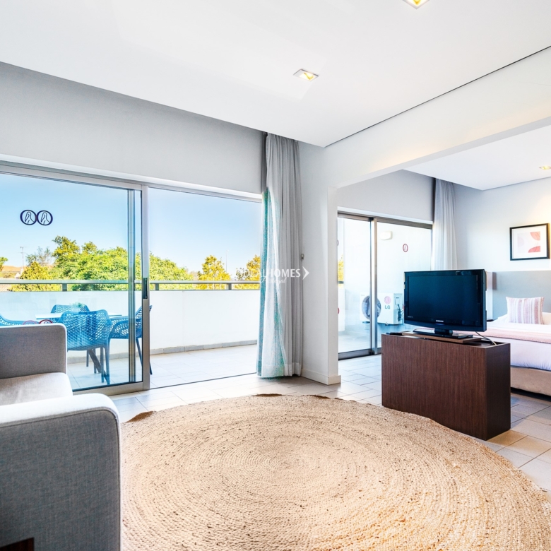 This studio apartment for sale is nestled in a private condominium in Alvor, and enjoys prime location – only two kilometres away from the beach and four minutes away from the city centre. Situated on the second floor, this apartment comprises a large open concept space featuring a fully fitted kitchen, a lounge area, a spacious bedroom and a convenient bathroom equipped with a jet bathtub. The apartment also boasts a large terrace offering captivating views and serving as an ideal spot for delightful al-fresco dining experiences. The condominium offers for its residents and guests a welcoming reception area, communal lifts, free internet, an on-site restaurant and bar, outdoor communal terraces, a large swimming pool complete with sunbeds, a children’s pool and landscaped gardens throughout. Additional features include: air conditioning, double glazed windows, fitted wardrobes and one parking space on the underground parking. Located within a short distance from the city centre of Alvor, this property offers easy access to a wide range of amenities, from international restaurants, to cosy cafes and convenient supermarkets. The stunning Praia de Alvor is just two kilometres away, while Praia da Rocha is within a 10 minute driving distance. Property ID: IDH33184 Price: €160,000 Property Size: 51.03 m2 Land Area: 80.46 m2 Bedroom: 0 Bathroom: 1 Property Type: Apartment Property Status: For Sale
