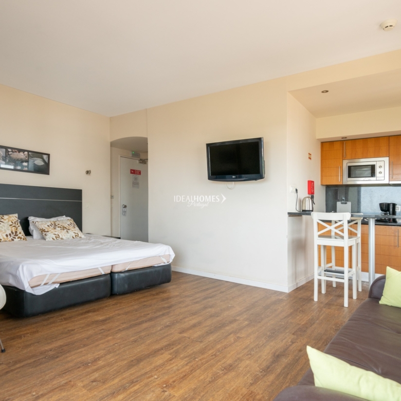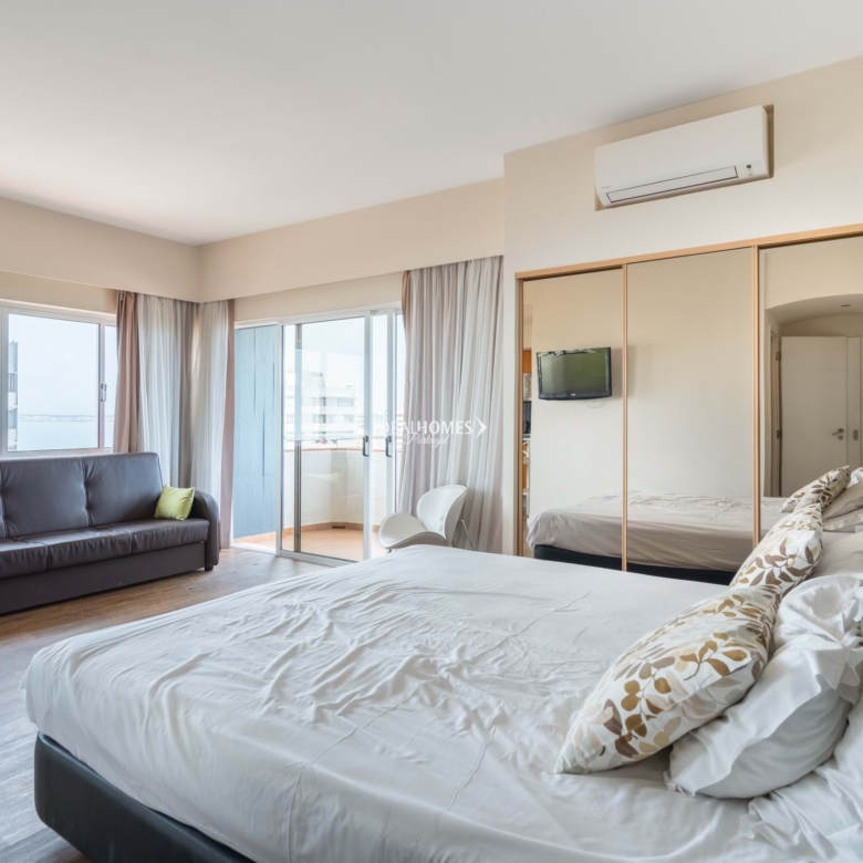 This studio apartment, located in a private condominium in Alvor, offers a prime opportunity for investment or leisure. Just a two minute walk from the beach, it boasts stunning views of the Atlantic Ocean. Situated on the ninth floor, the apartment features an open-plan living area, a modern bathroom, and a well-equipped kitchenette. The condominium provides amenities such as outdoor and indoor pools, a sauna, a Turkish bath, and a fitness centre. Additional features include: air conditioning, fitted wardrobes, double glazed windows and a communal lift. Conveniently located within walking distance of Alvor’s pristine beach and essential amenities, this locale offers a perfect balance of relaxation and convenience. Golf enthusiasts will appreciate the proximity of numerous golf courses, while the vibrant city centre of Portimao, just 5 kilometres away, provides a lively contrast to Alvor’s tranquillity. Property ID: IDH33315 Price: €210,000 Property Size: 34.60 m2 Land Area: 54.95 m2 Bedroom: 0 Bathroom: 1 Property Type: Apartment Property Status: For Sale