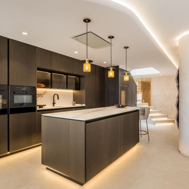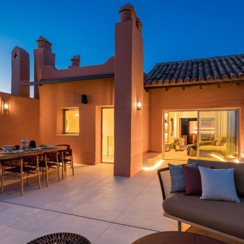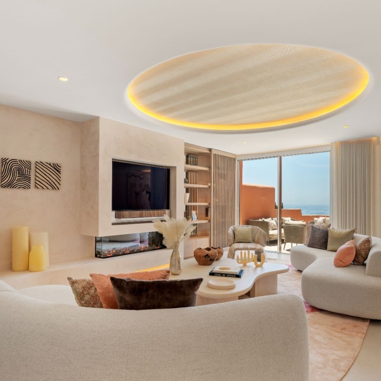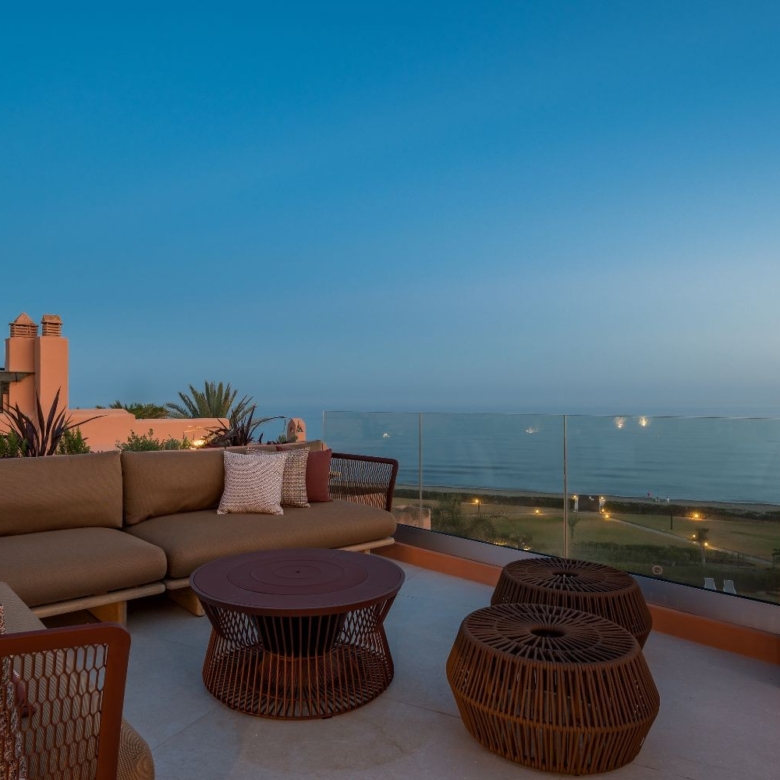 Welcome to this exclusive 4 bedroom, 5 bathroom duplex penthouse situated right in the middle of the famous La Morera urbanisation. With its more than 240 m2 interior and another 200 m2 of terraces it offers a level of space that can normally only be found in villas. This outstanding property impresses with an exclusive interior design, elegant contemporary furniture, tailormade wardrobes, a new Siematic designer kitchen with Miele appliances, a Bang & Olufsen sound system, an electric fire place and stylish Kettal outdoor furniture. From both terraces you can enjoy the true beauty of a frontline beach location, with sea views that follow the shoreline and Mediterranean to the outlines of Gibraltar and North Africa. The penthouse comes with 2 underground parking spaces and a storage room. La Morera is an impressive frontline beach urbanisation which is located next to Marbella’s famous Los Monteros beach and just a few steps from the well-known beach restaurant Trocadero Arena. Designed by the famous Melvin Villarroel it combines timeless Mediterranean architecture with exclusive luxury. It offers 24 hours security, a pool, an indoor pool, a gym and a wonderful tropical 10.000 m2 garden. The location of this community is probably one of the best in Marbella: it has direct access to a sandy beach, no passing traffic and is still very close to golf, dining and shopping facilities. A unique opportunity that must be seen to be fully appreciated.