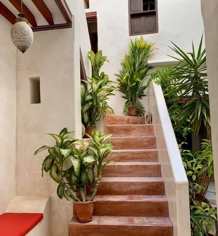 A defining characteristic of the house, in keeping with traditional Swahili architecture, is that all windows are open (no glass) and are closed with charming shutters. This unique design choice ensures privacy is not a concern while providing agreeable cross-winds in each room, facilitating natural ventilation and a pleasant indoor climate.