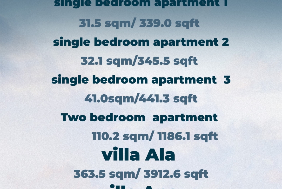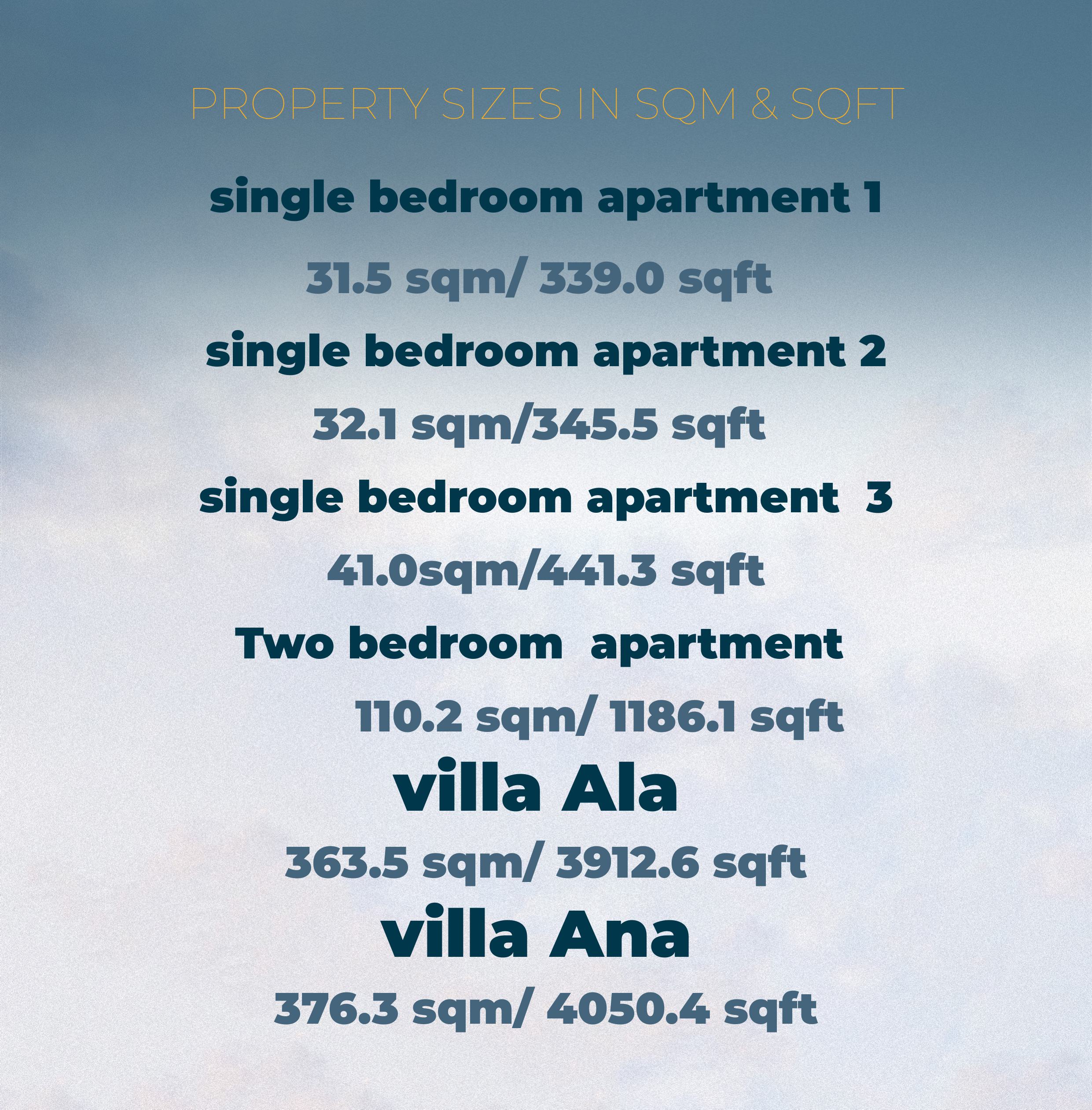 * Spacious and Luxurious Apartments: Choose from a variety of spacious apartments, including four-bedroom units with six bathrooms, two-bedroom apartments with two bathrooms, and one-bedroom apartments with one bathroom. The floor space ranges from 31.5 square meters to 376.3 square meters, providing ample space for comfortable living.