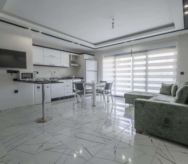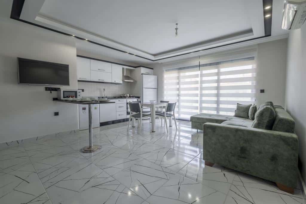 The American kitchen integrates with the living area, so cooking and conversation flow naturally. In addition, included white goods reduce setup time. You can invite friends over sooner and spend more time enjoying the beach rather than waiting for deliveries or installations. Therefore, this 4 room apartment for sale in Alanya not only looks ready; it functions ready.
