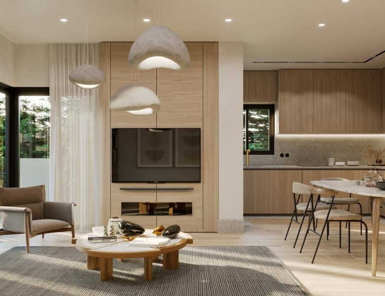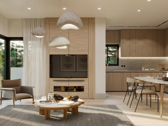 This is a small residential block of Apartments which is in a desirable area of Derynia, just few hundred meters off the Paralimni Hospital, overlooking the old Famagusta City. Some of its features are the luxury living feel and look plus the minimalistic design along with its premium location. Concrete and glass are the major exterior features which give a modern unique look, and the apartments inside are luxurious and contemporary. The project includes 6 two- and three-bedroom apartments with their own verandas and parking places. The two penthouse apartments also include a massive roof garden with stunning views. It is designed to meet the needs of families and couples who want to be just a few minutes’ drive away from the buzzing protaras and ayia napa center. Completion-December 2024