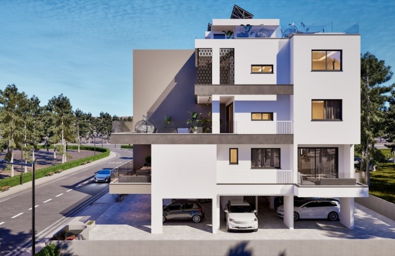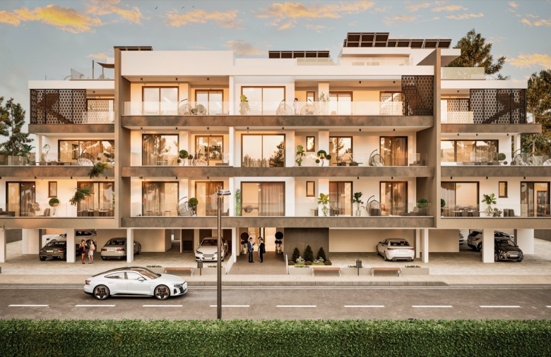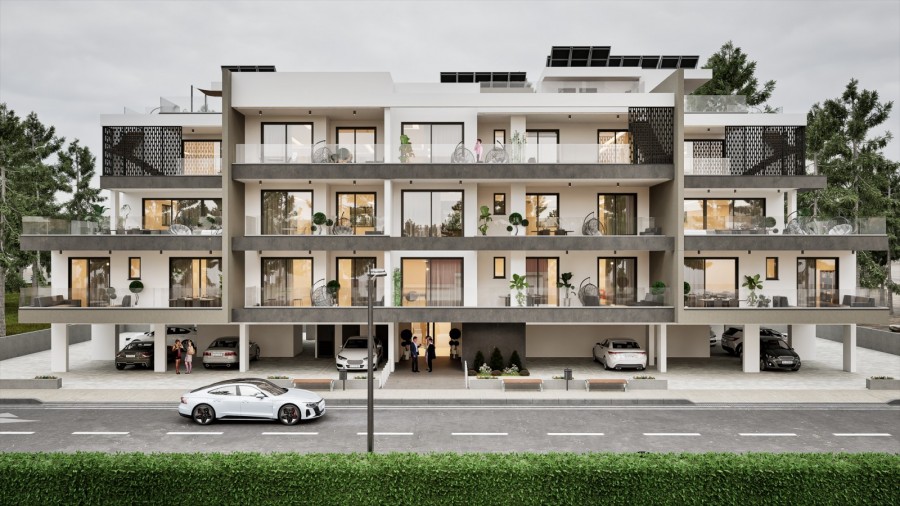 This contemporary residential project in a new, quiet neighborhood of Aradippou offers thoughtfully designed 1- and 2-bedroom apartments, ideal for modern living. Surrounded by green parks and just minutes from the Metropolis Mall, the development enjoys an excellent location with easy access to Nicosia and Limassol highways, Larnaka city center, the beach (5km), and the international airport (11km). Each apartment boasts energy efficiency (Certificate A), granite kitchen worktops, ensuite walk-in showers, large verandas, and high-quality finishes including thermal aluminum double-glazed windows, marble staircases, and glass veranda railings. Residents benefit from video intercom systems, covered parking, individual storage units, and provisions for air conditioning and electric car chargers, while penthouses feature private roof gardens.Completion: December 2027