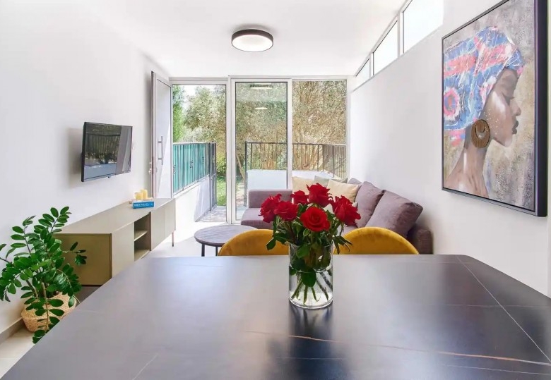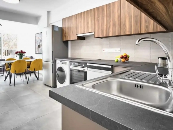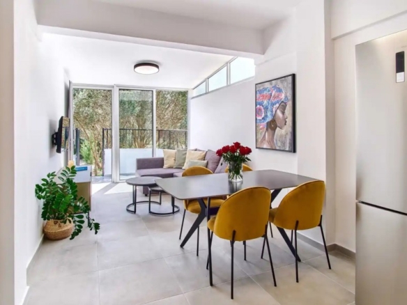 This beautiful 2-bedroom apartment is located just a 3-minute walk from the beach, offering the perfect blend of convenience and tranquility. Nestled in a prime location, you’ll be surrounded by lush greenery, and within walking distance of hotels, supermarkets, restaurants, and shops. This beautifully renovated apartment boasts modern finishes throughout. Enjoy the comfort of double-glazed windows and air conditioning in every room. It comes fully furnished, ready for you to move in, with a sleek, fully equipped kitchen featuring a dishwasher. The cozy living room includes a sofa bed and smart TV, offering a stunning garden view. Step outside to a spacious balcony, perfect for relaxing or entertaining.