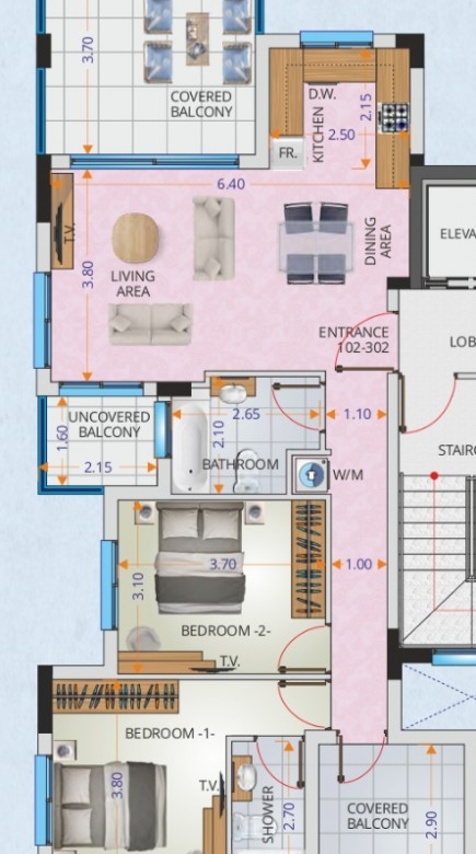 The project boasts eight two bedroom with two bathroom apartments- all with spacious and contemporary living areas. The fourth floor apartments of two bedrooms and two bathrooms benefit from large covered balconies plus two rooms on the roof with three bathrooms exclusive to owners which prefer luxury living and benefits from a large bar and barbecue area on the roof garden and panoramic views of the Famous Larnaca Salt Lake. Each apartment has one parking bay and a storage room on the ground level. The lovely residential neighborhood is quiet and family orientated surrounded by large luxury houses and residential properties. The project is very near to supermarkets, private schools such as the American Academy and with easy access to highways to Nicosia, Limassol, Paphos and Ammochostos. The Famous Larnaca Salt Lake and Cineplex Entertainment Complex is in close proximity.
